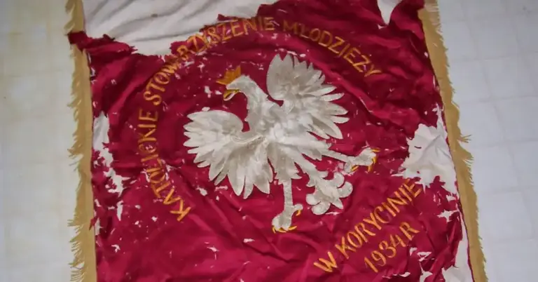 Odnaleziono historyczny sztandar Stowarzyszenia Młodzieży Katolickiej. Teraz parafia chce go odnowić