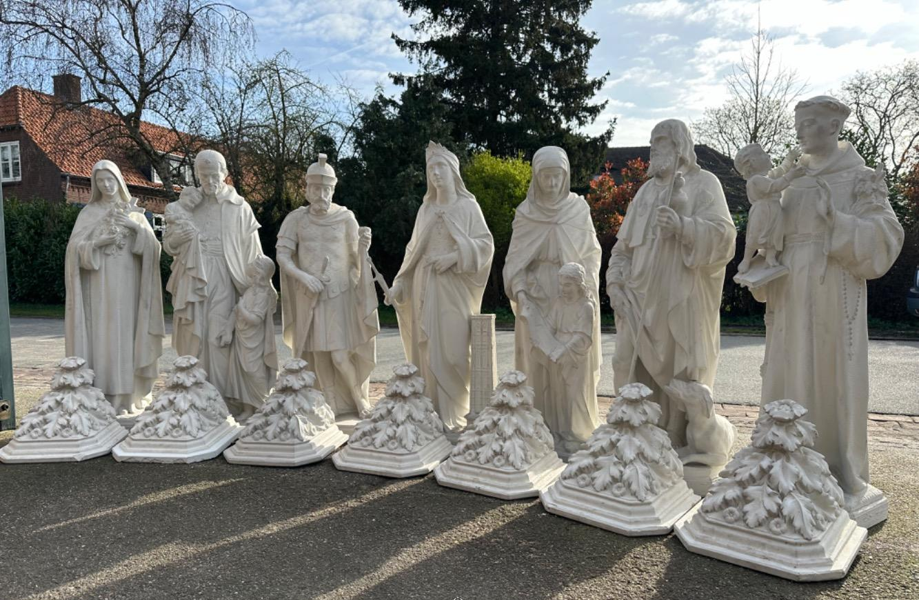 W skład kompletu z gipsu wchodzi: siedem gotyckich rzeźb z cokołami.