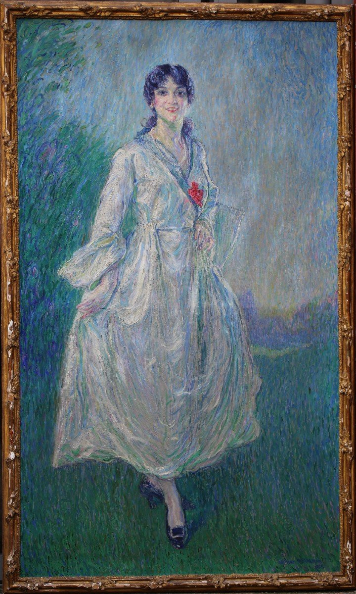 S2847 Portret młodej kobiety, Duży olej na płótnie, XX w.