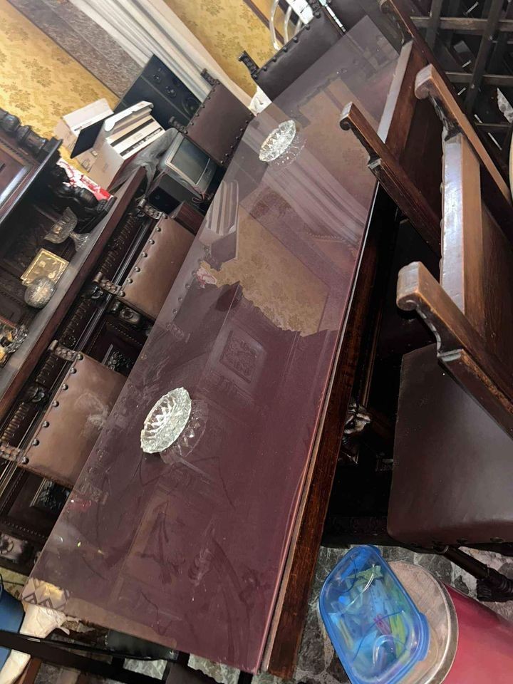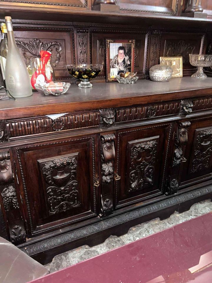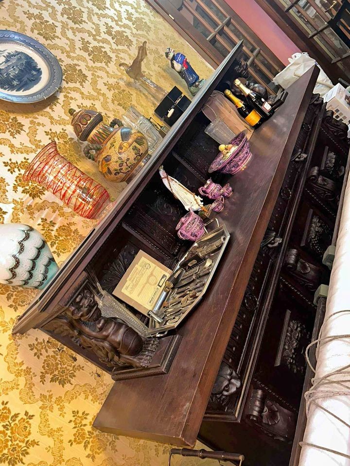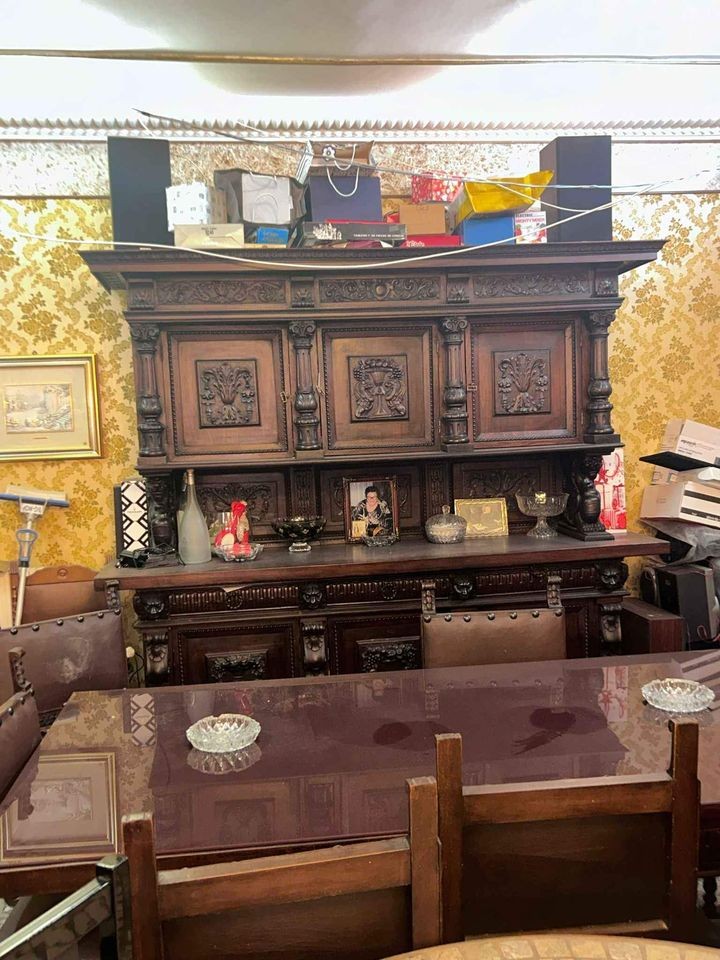 W skład kompletu wchodzi: kredens, pomocnik, stół, 8 x krzesło.