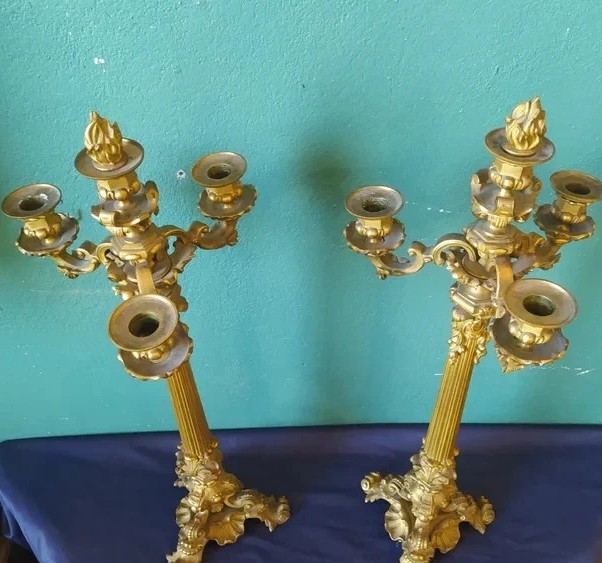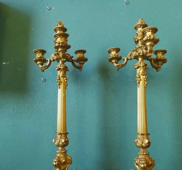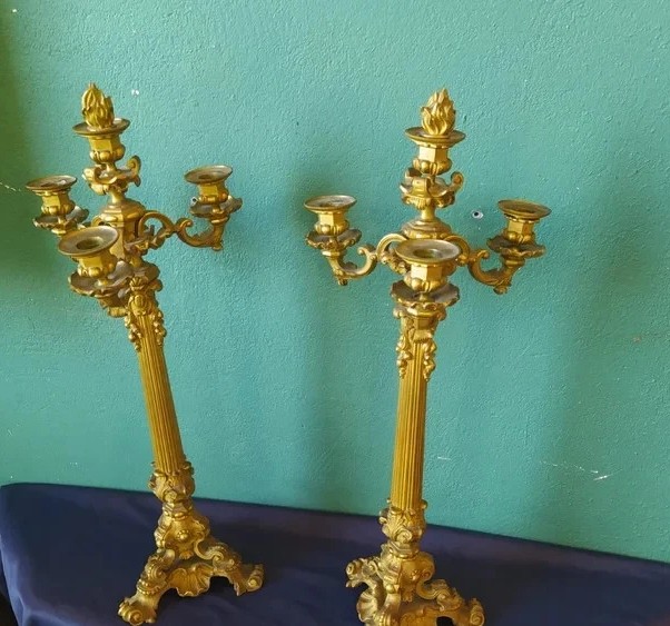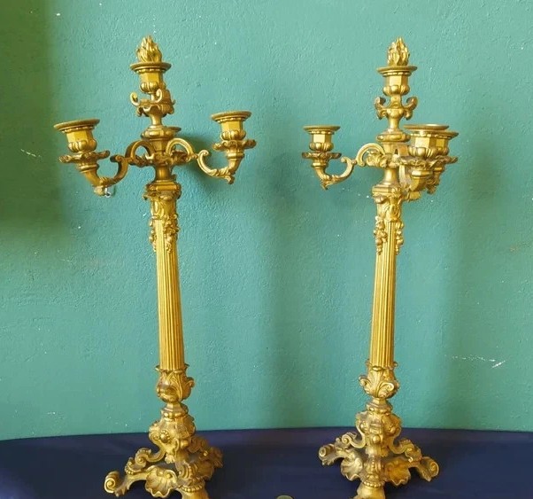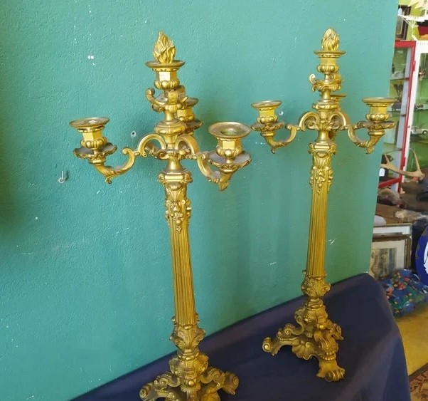 Para antycznych, napoleonickich, pozłacanych świeczników z brązu, pochodząca z około 1830 roku.