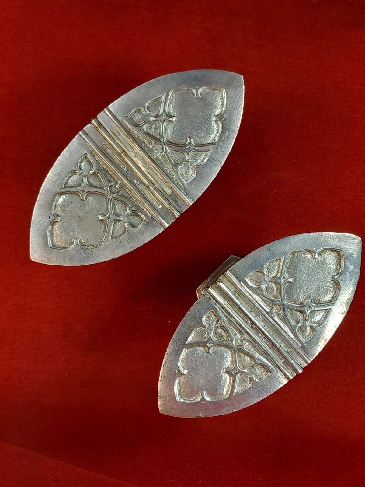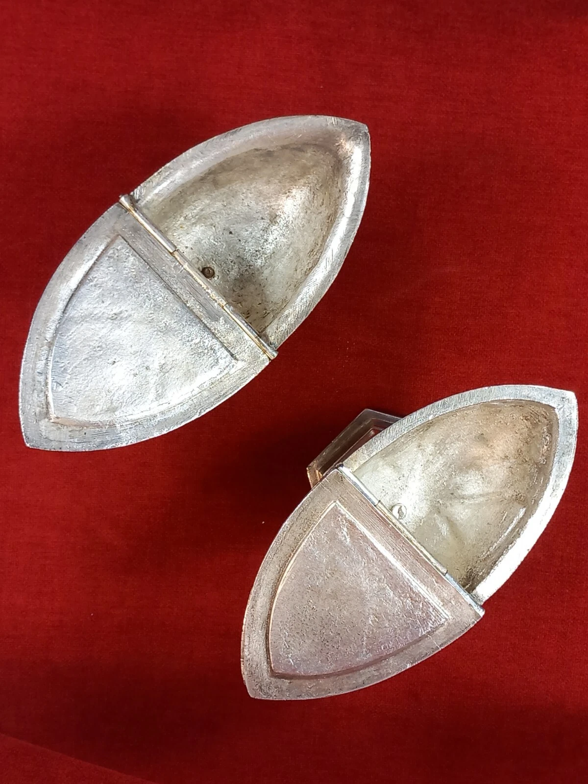 Zestaw neogotyckich kadzielnic w brązie srebrzonym z XIX wieku, przeznaczonych do liturgii katolickiej. Te eleganckie akcesoria liturgiczne łączą w sobie zarówno estetykę neogotyku, jak i tradycję katolicką, tworząc wyjątkowy element wyposażenia kościołów i miejsc kultu.