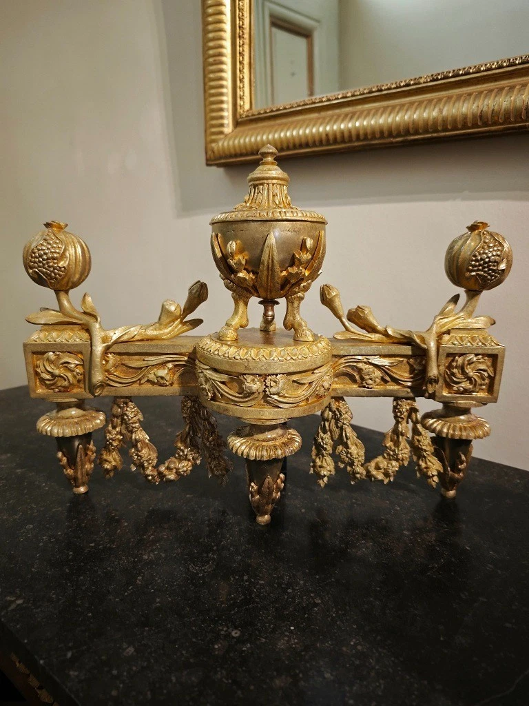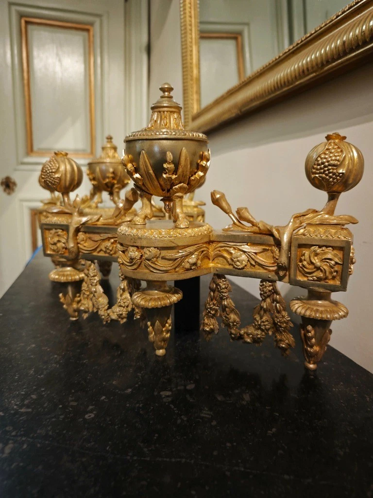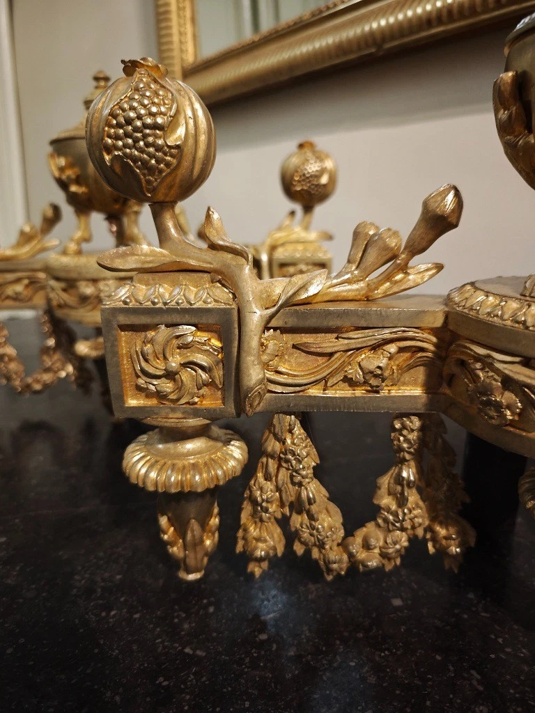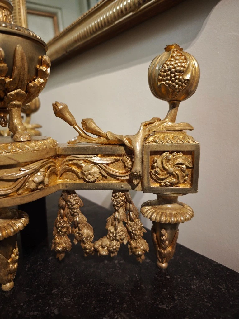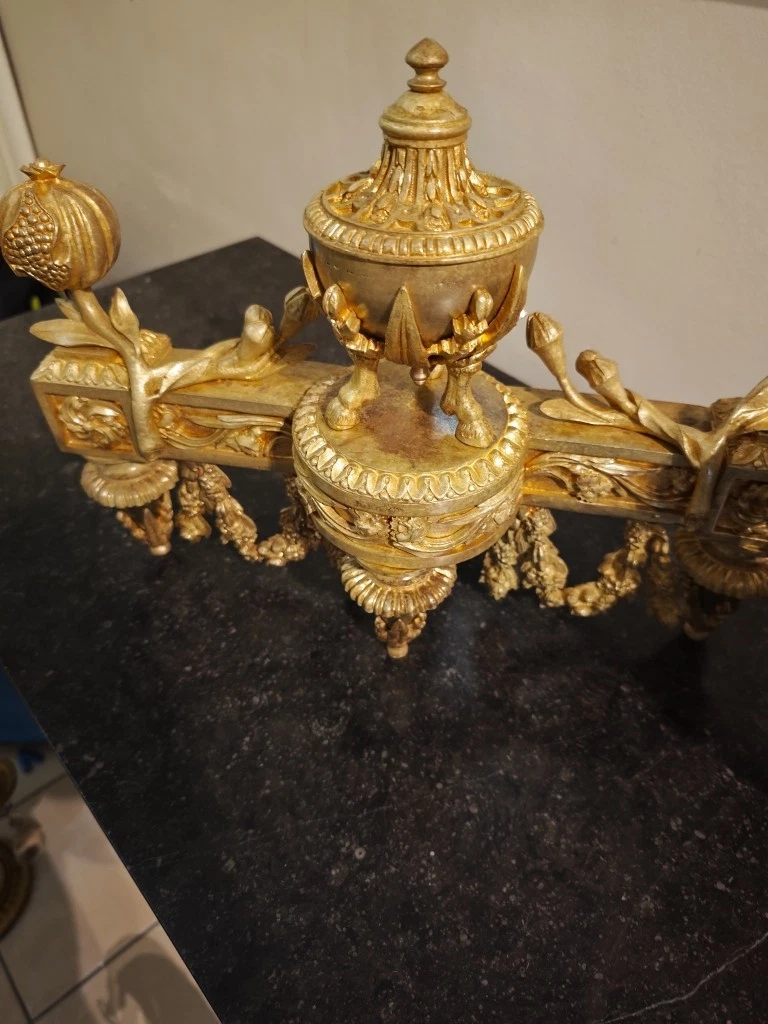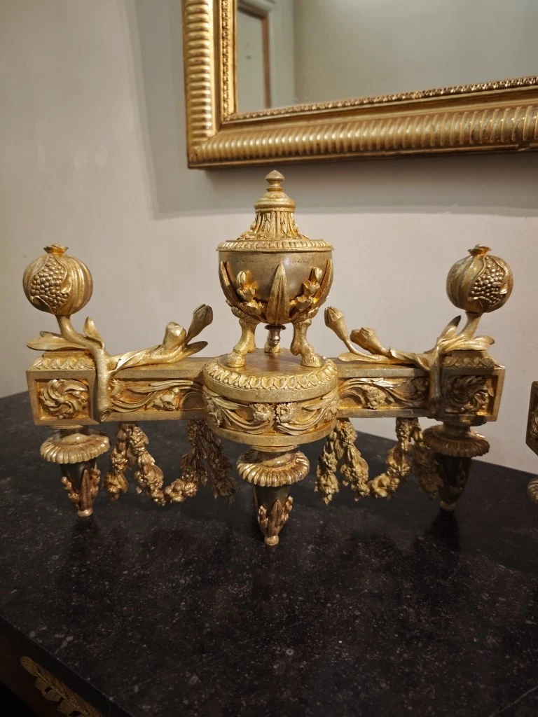 Para kominkowych świeczników w złotym brązie w stylu antycznie klasycznym Louis XVI, XIX wiek.