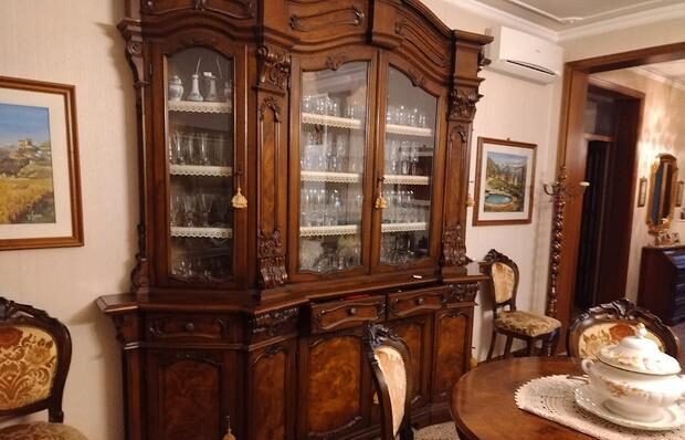 Meble do salonu: okrągły stół rozkładany, 4 krzesła, witryna z kredensem oraz mniejsza kredens, wszystko w świetnym stanie, dodatkowo bardzo ładna kątowa witryna. W komplecie gratis szklanki i filiżanki.