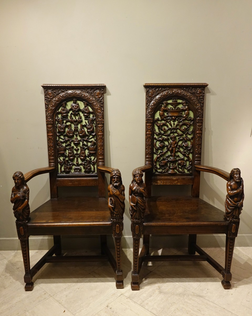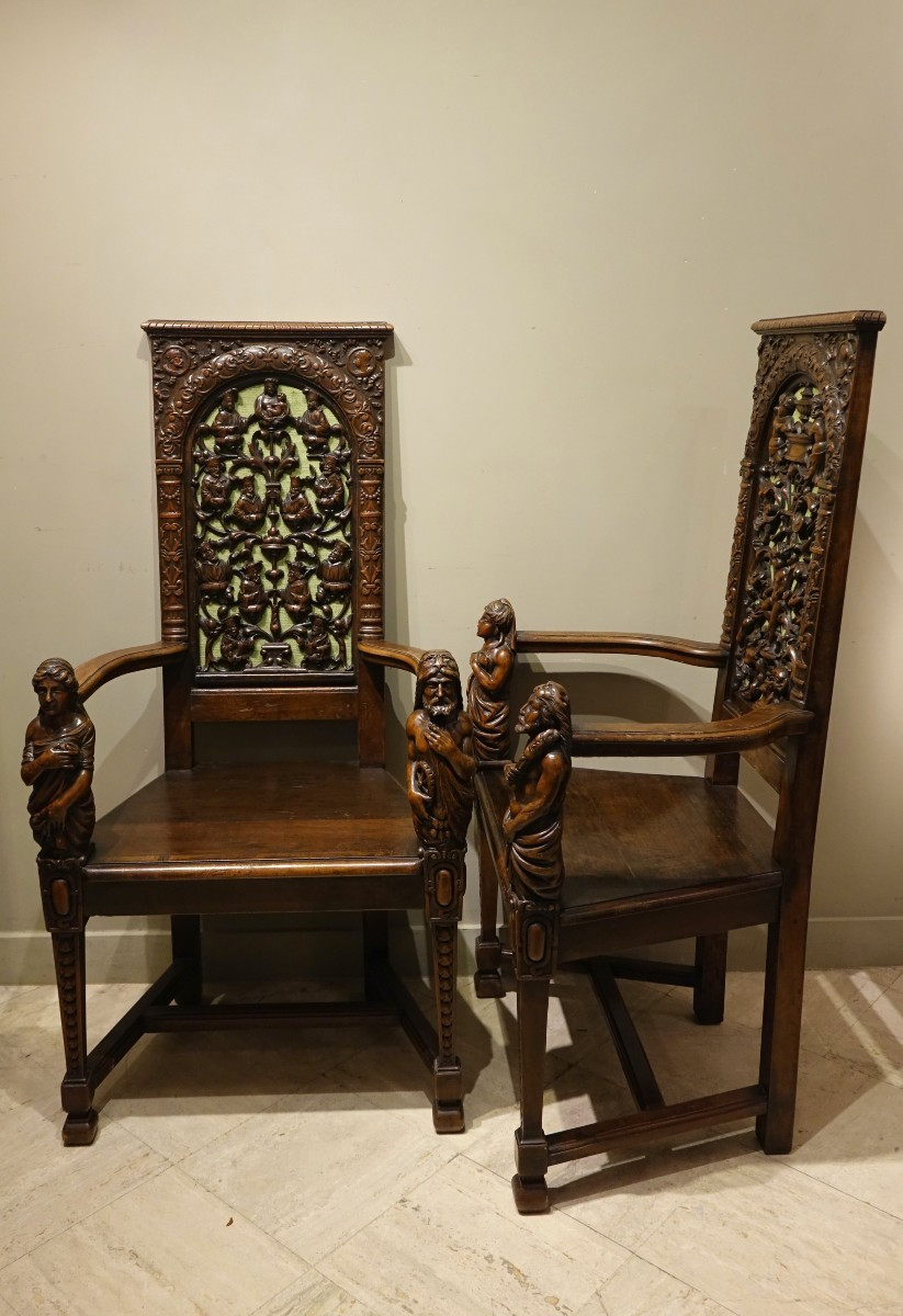 Dwa neo-renesansowe fotele z orzecha, pochodzące z Francji, datowane na około 1870 rok.