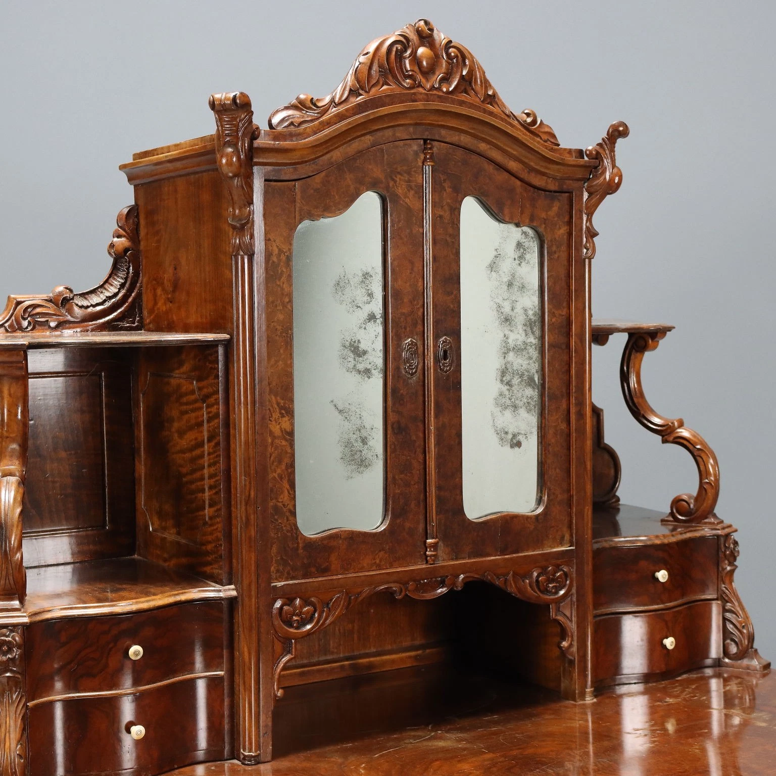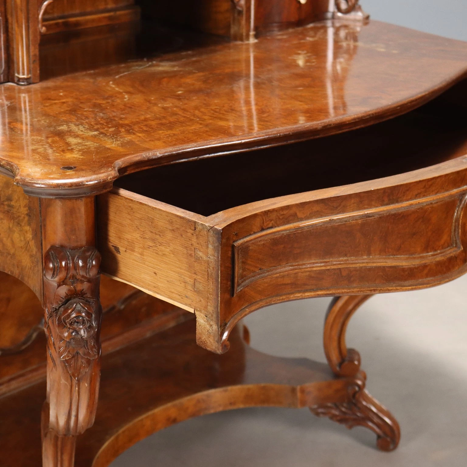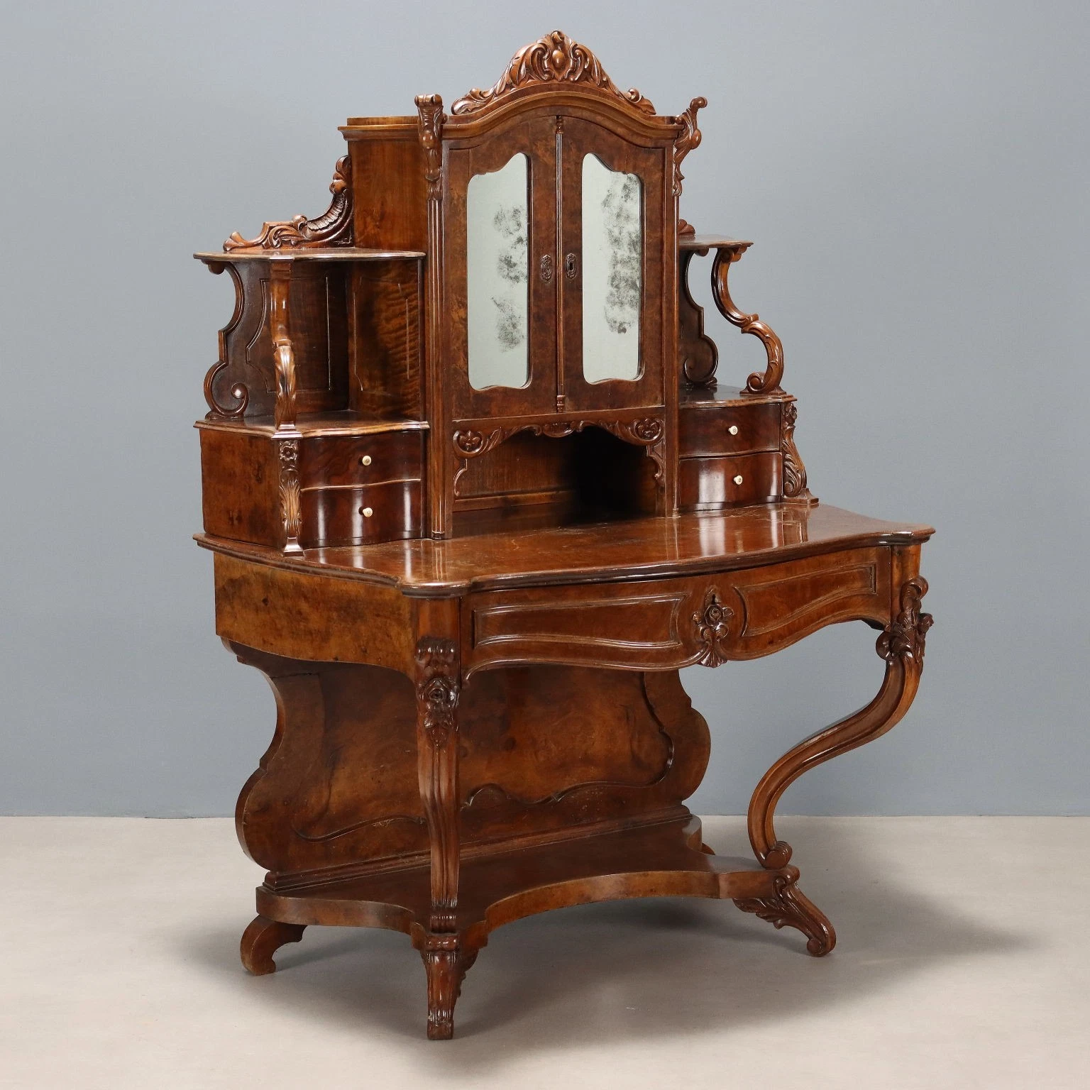 Antyczne biurko Louis z orzecha włoskiego, pochodzące z XIX wieku, w oryginalnym stanie. To elegancki mebel, który emanuje klasycznym stylem i ponadczasowym urokiem.