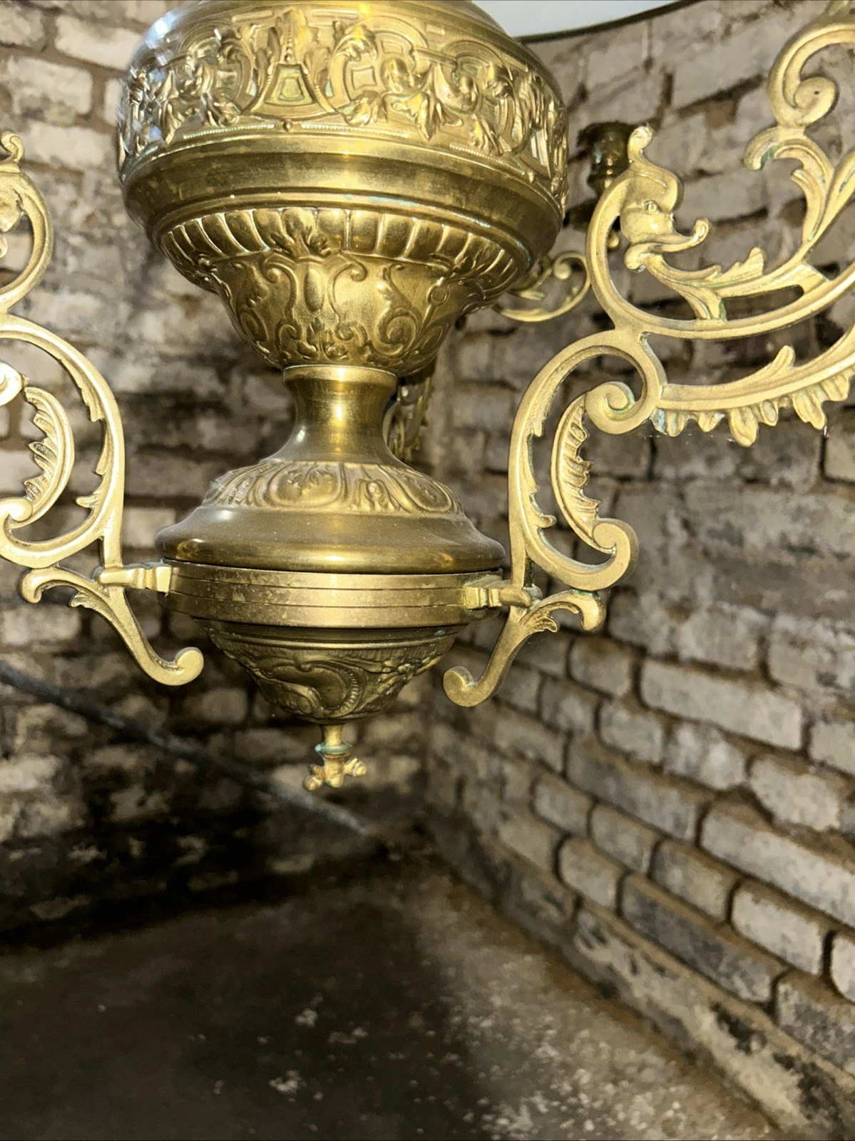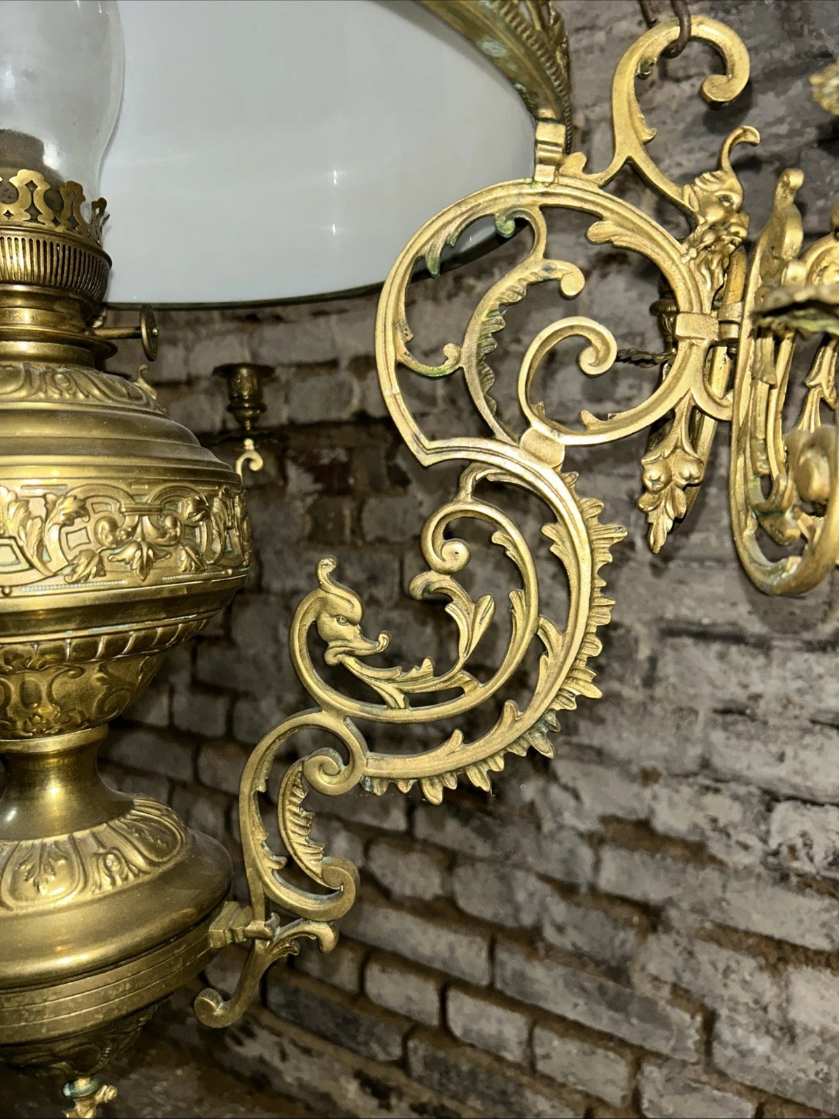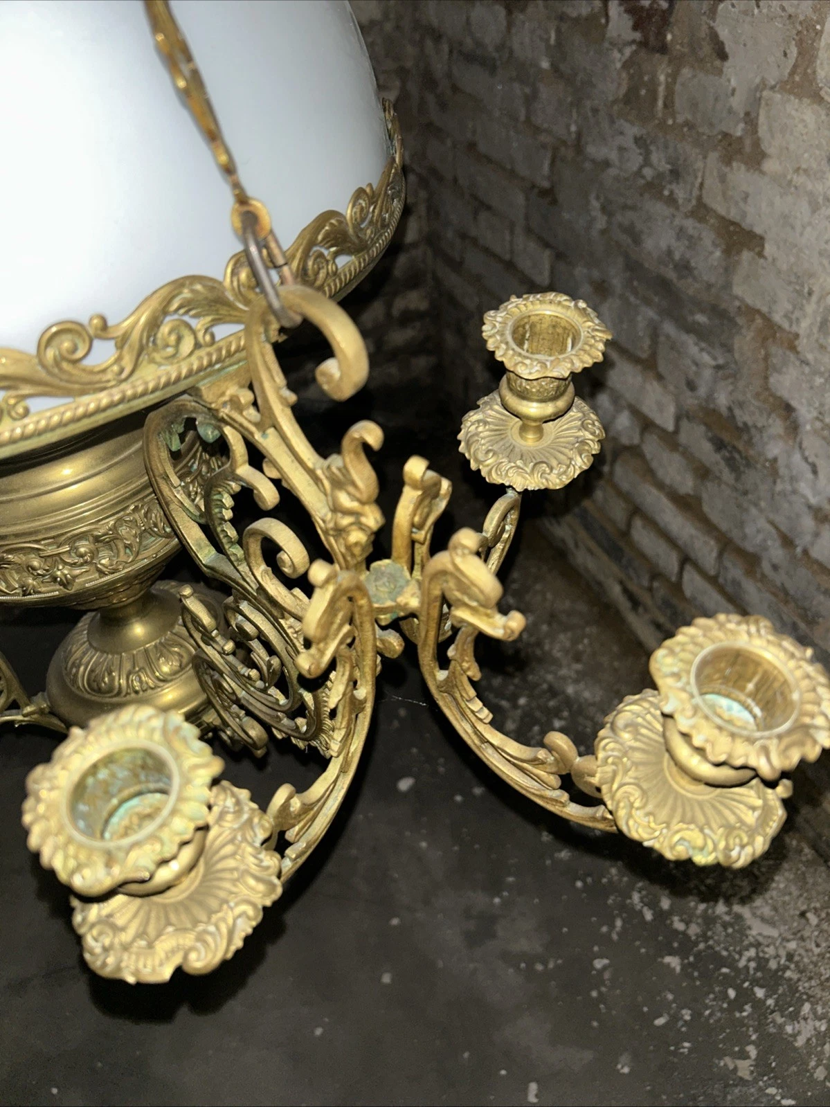 Bronzowa antyczna lampa sufitowa Majolika z 9 świecami, bardzo rzadka lampa naftowa.