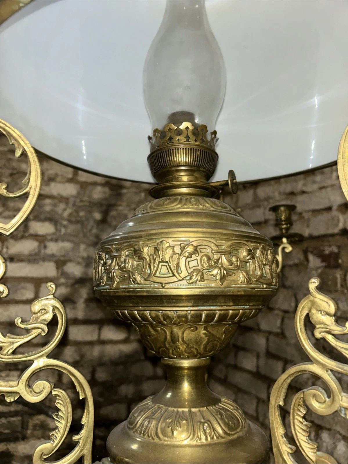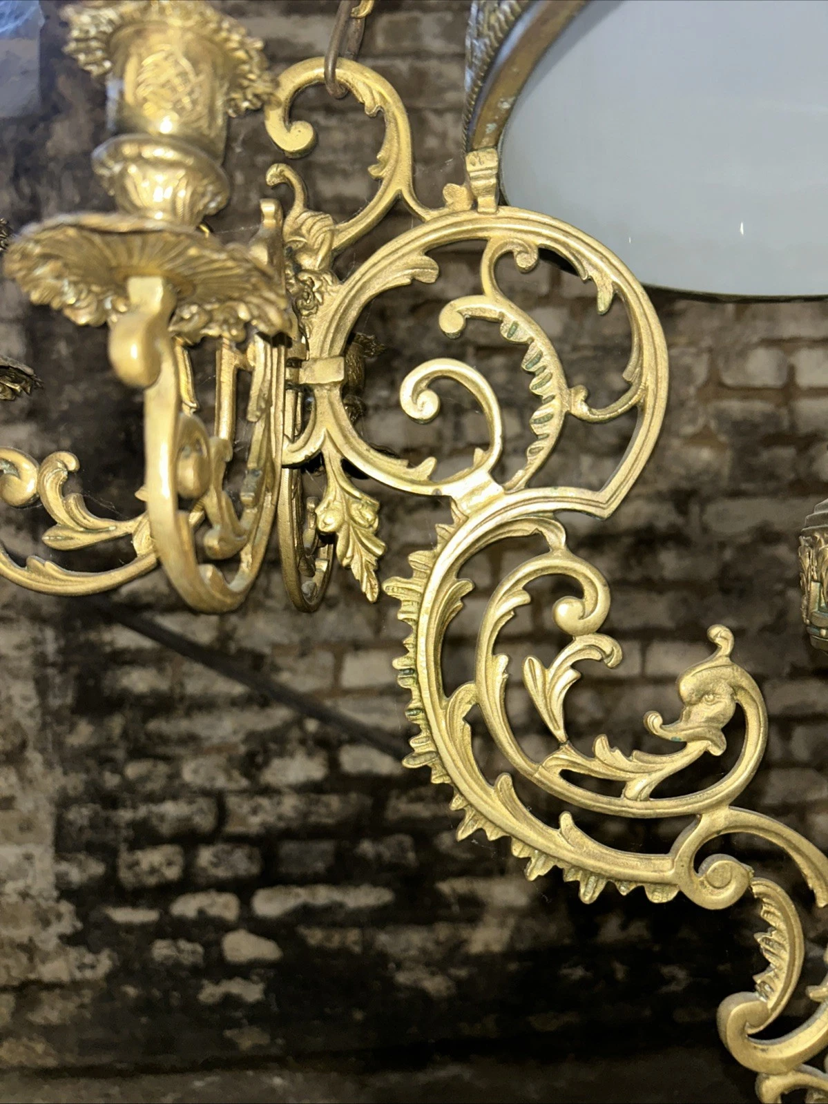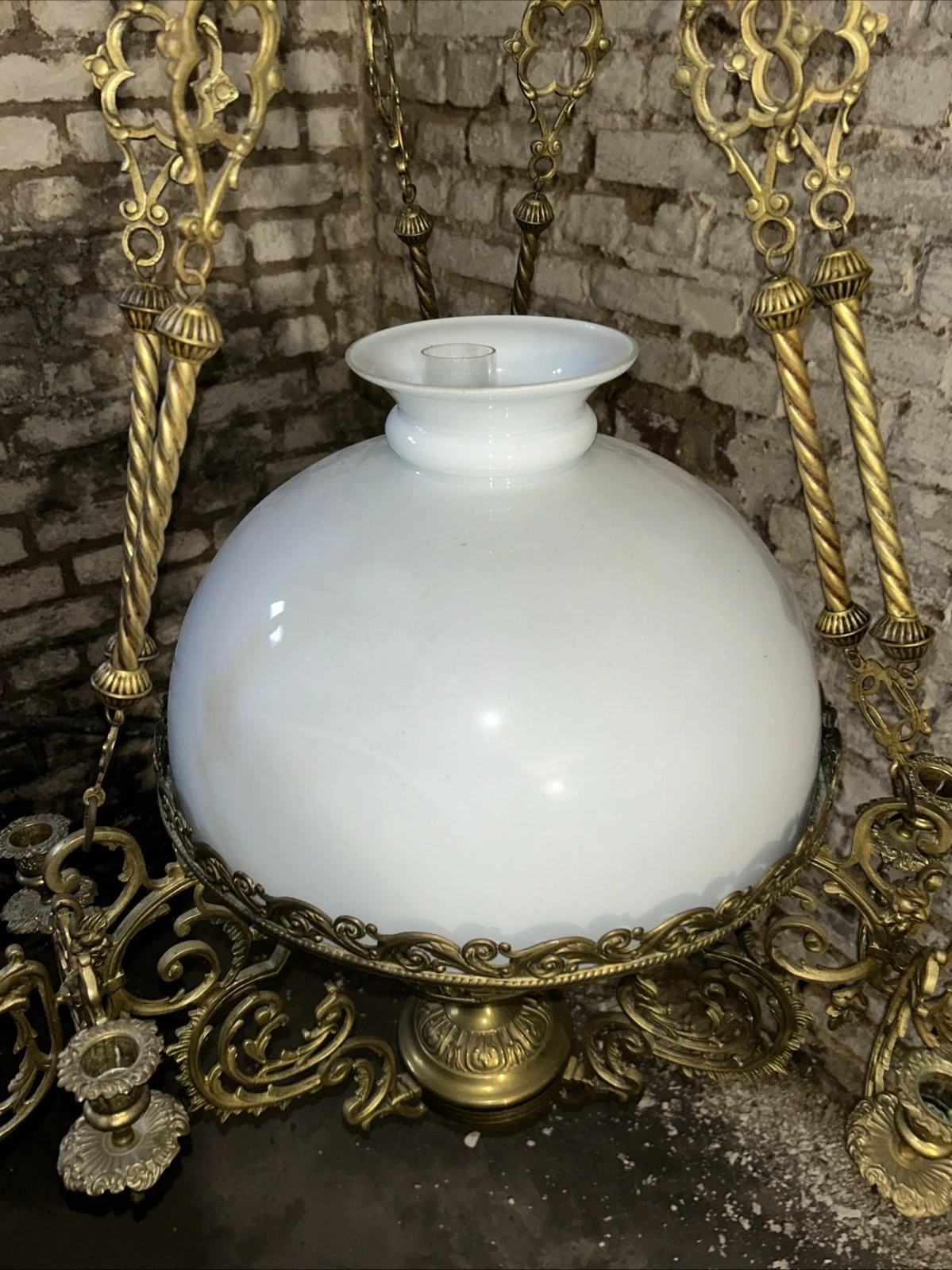 Bronzowa antyczna lampa sufitowa Majolika z 9 świecami, bardzo rzadka lampa naftowa.