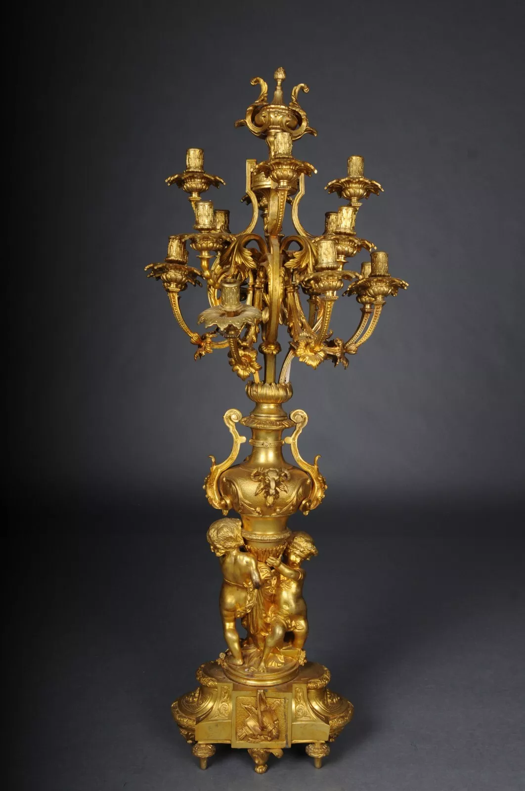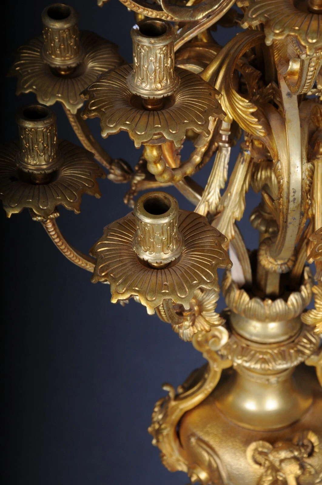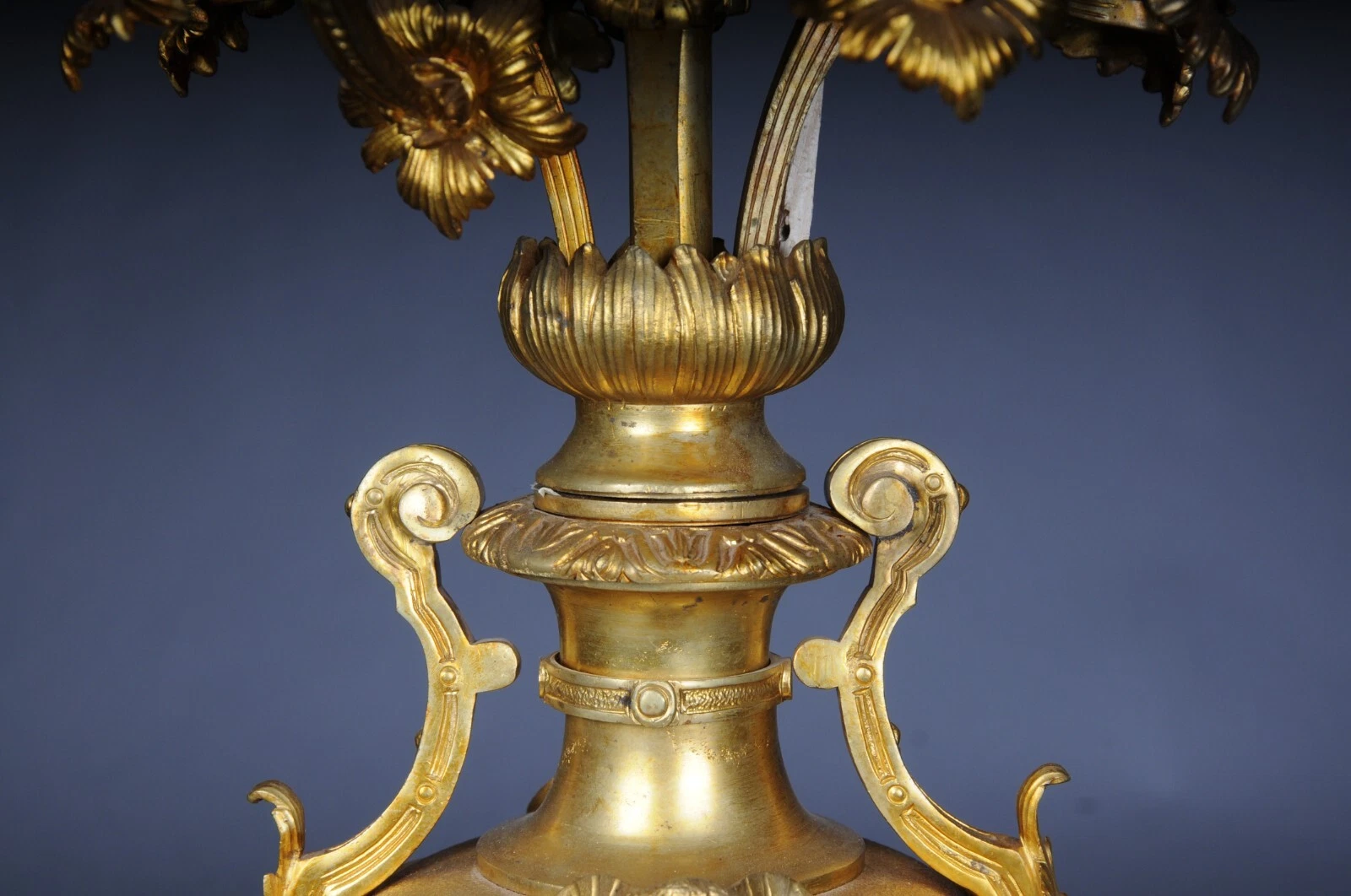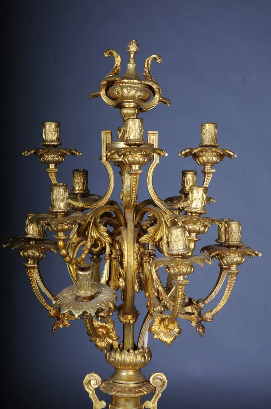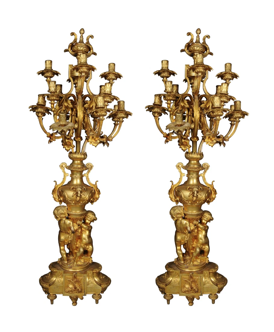 K23 Para (2 szt.) monumentalnych królewskich świeczników, pozłacany brąz, Ludwik XVI