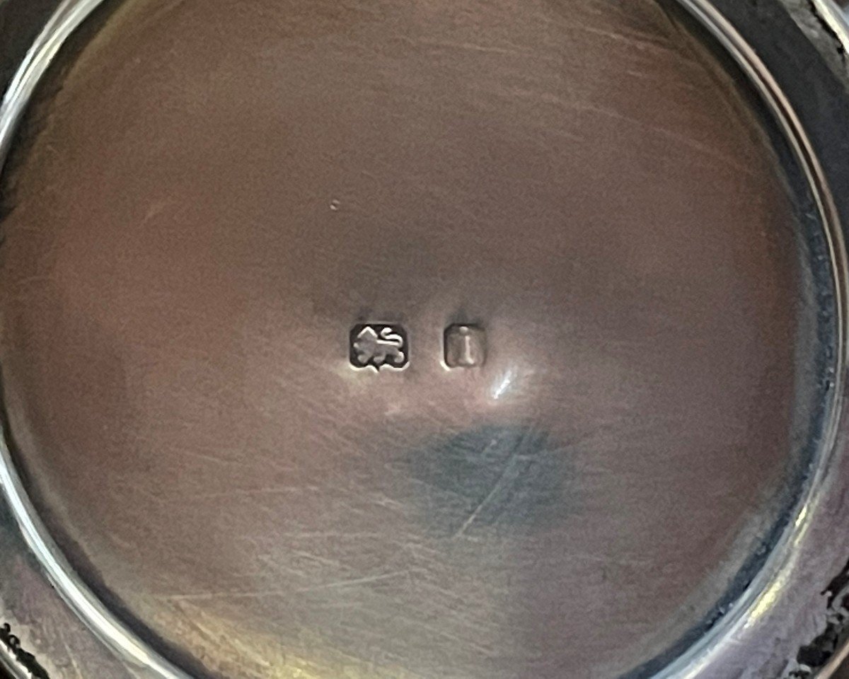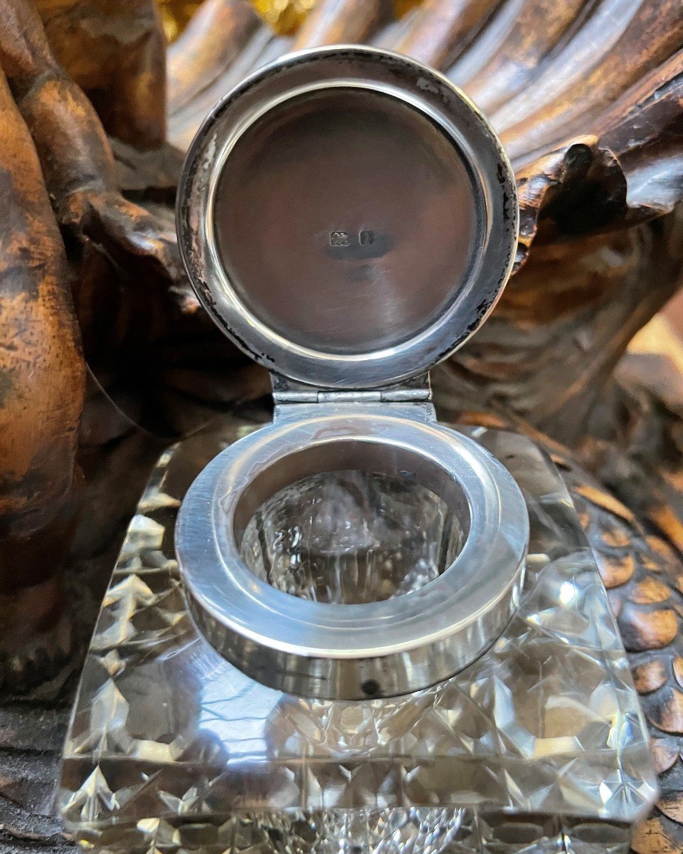 Fascynujące detale przedstawiające dwa putti, które w artystyczny sposób podtrzymują rybę, czynią ten kałamarz nie tylko funkcjonalnym akcesorium, ale również wyjątkowym dziełem sztuki. To doskonały wybór dla miłośników antyków, którzy cenią sobie piękno oraz kunszt rzemieślniczy sprzed ponad wieku.