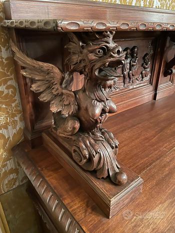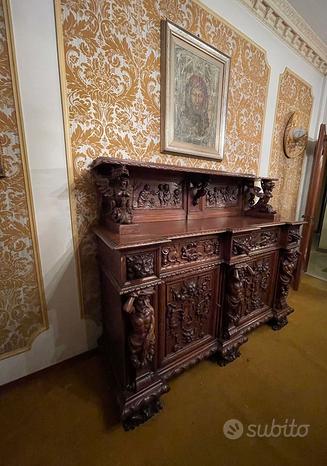 Ten rodzaj kredensu, często wykonany z cennych gatunków drewna, takich jak orzech, buk czy cirmolo, wyróżnia się bogatą dekoracją rzeźbioną, nawiązującą do motywów z XVI wieku.