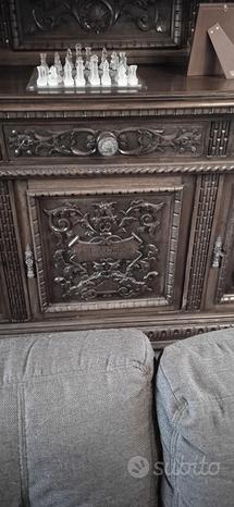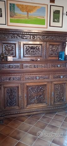 Sala neorenesansowa, całkowicie wykonana z krajowego orzecha, z 1820 roku, ręcznie rzeźbiona. Składa się z dwóch kredensów, jak na zdjęciu. Stan zachowania bardzo dobry.