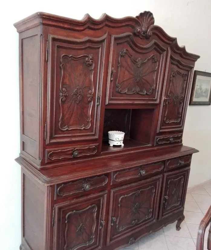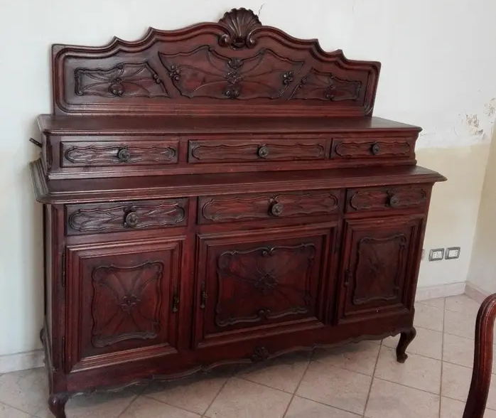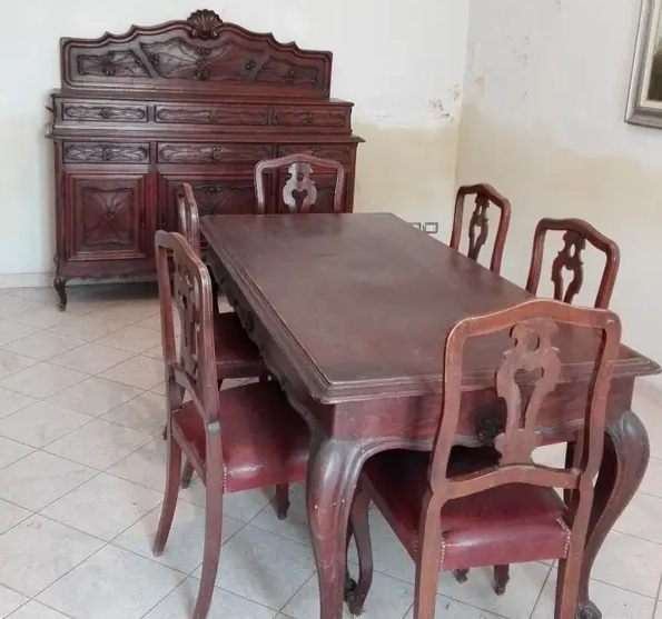 W skład kompletu wchodzi: kredens, pomocnik, stół, 6 x krzesło.