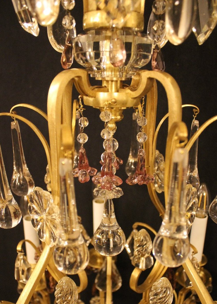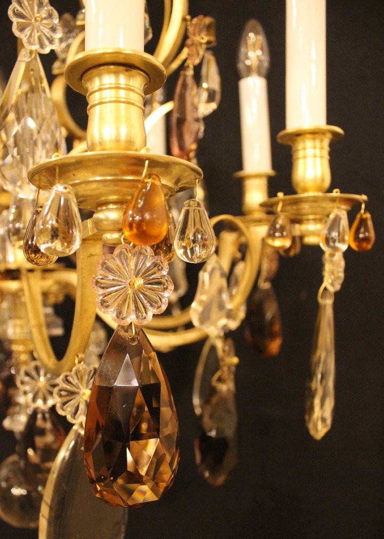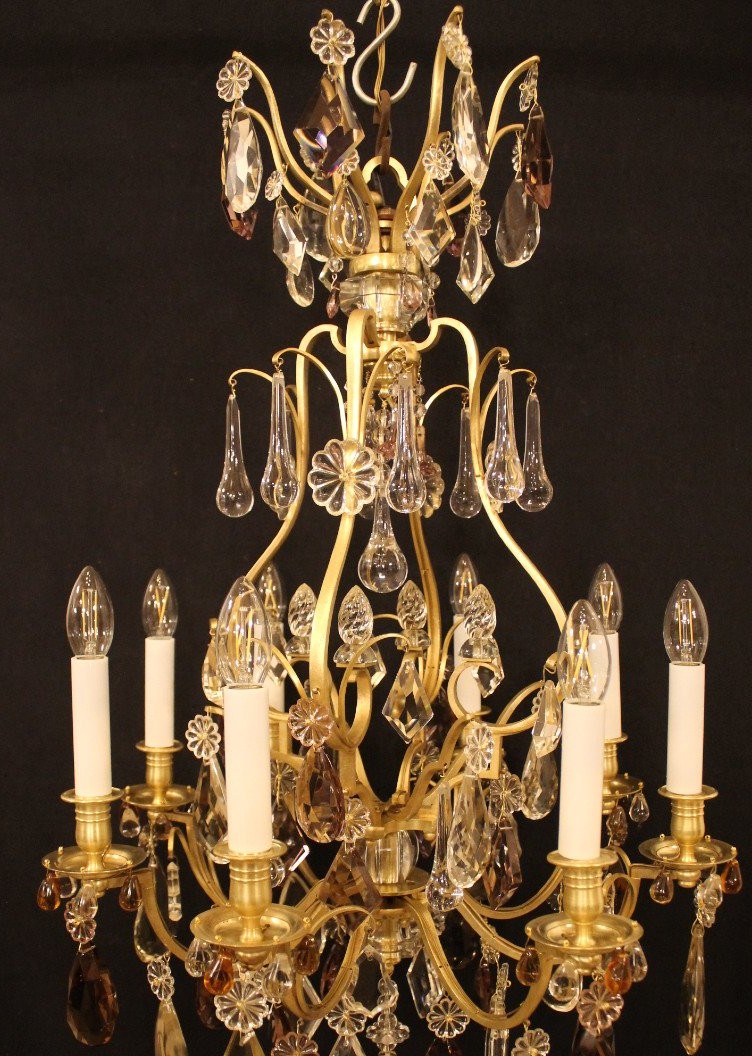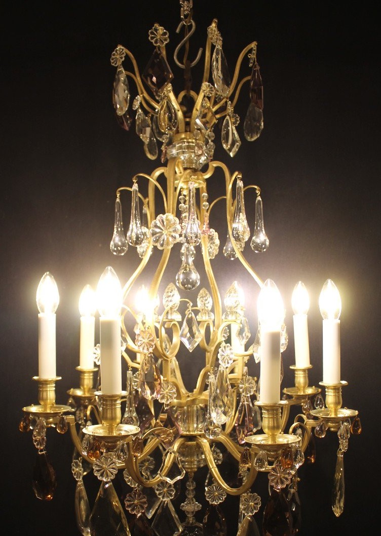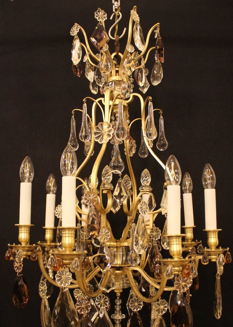 Klatka żyrandolowa z 8 światłami w brązie i kryształach