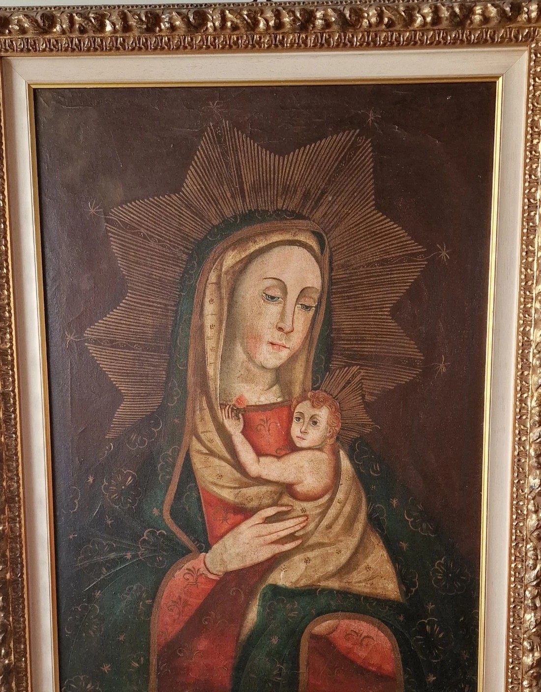 Obraz Matki Boskiej . Antyk. Olej na płótnie. Pochodzenie: Włochy.