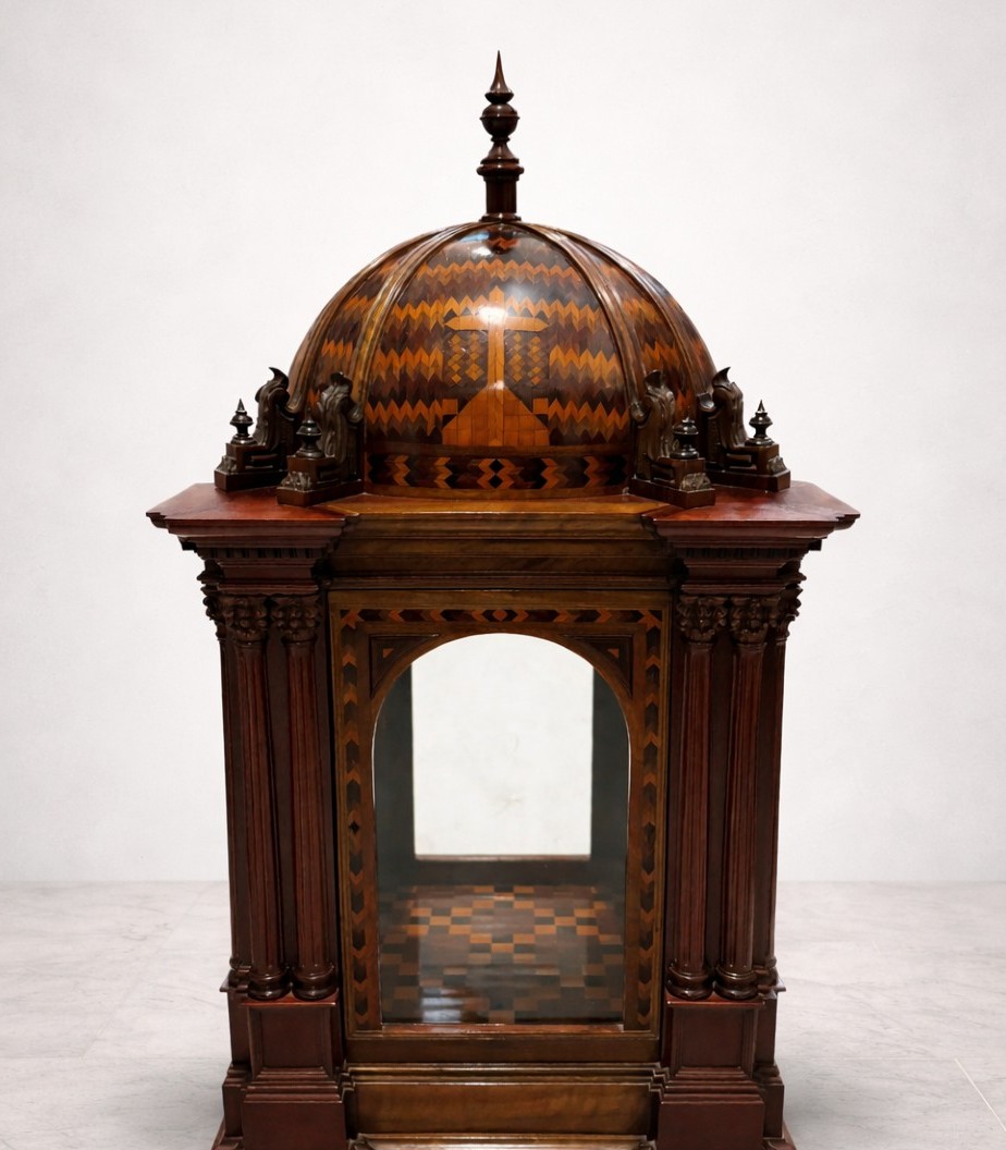 Duża kaplica wotworna wykonana z tropikalnego intarsjowanego drewna mahoniowego. Pochodzi z XIX wieku. W doskonałym stanie