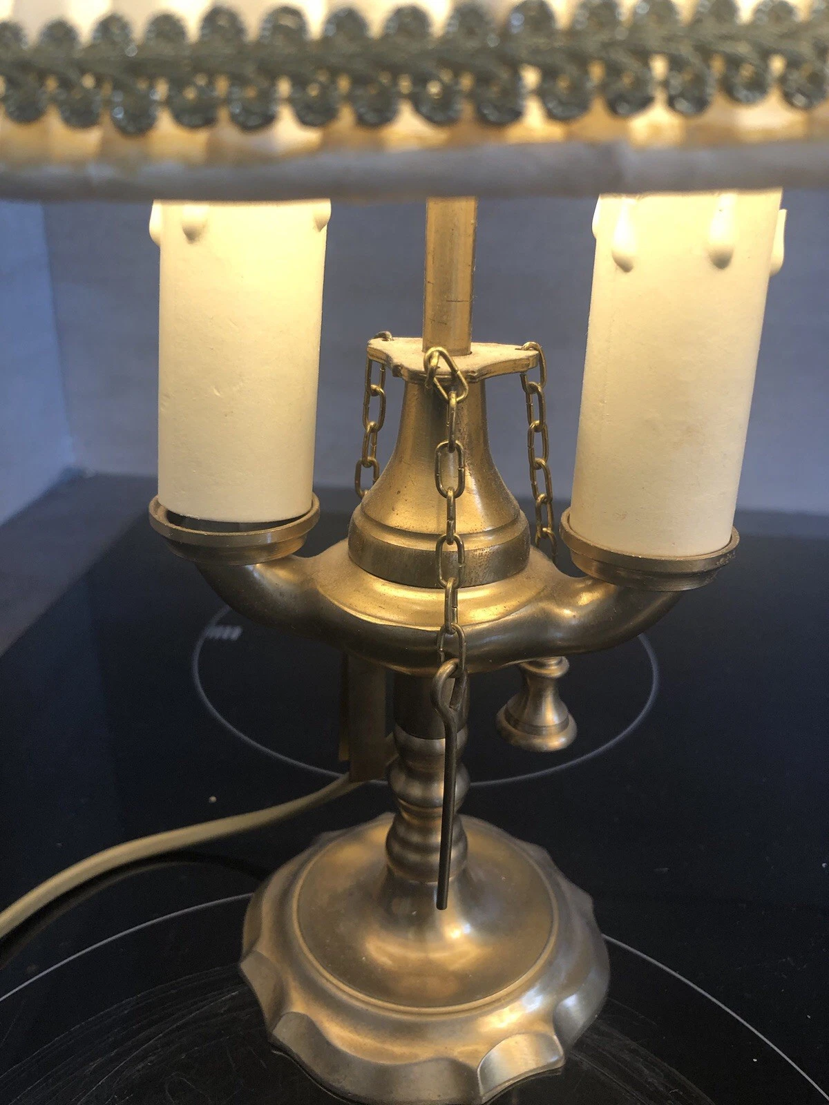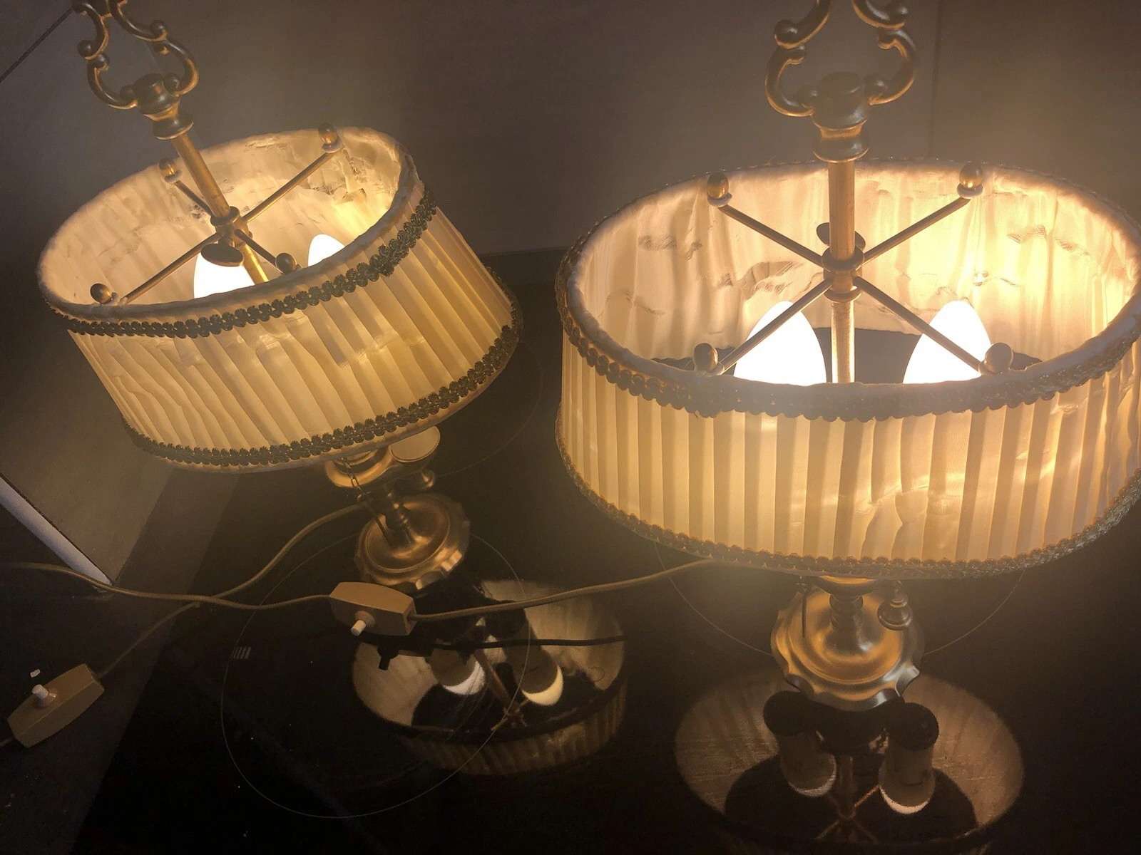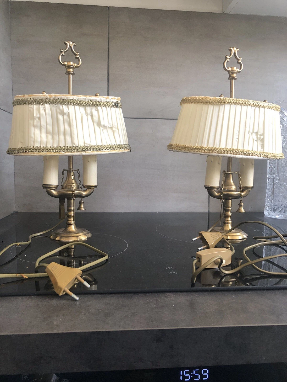 K89 Urocza para lamp w stylu z mosiądzu i brązu, z abażurem z nylonu.
