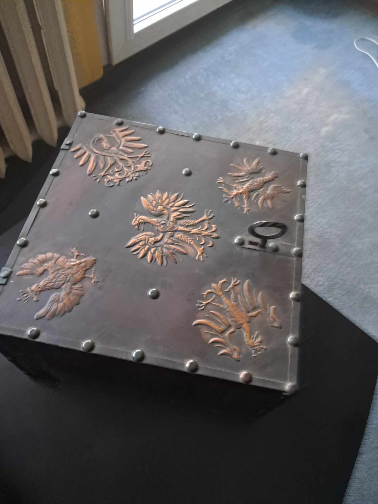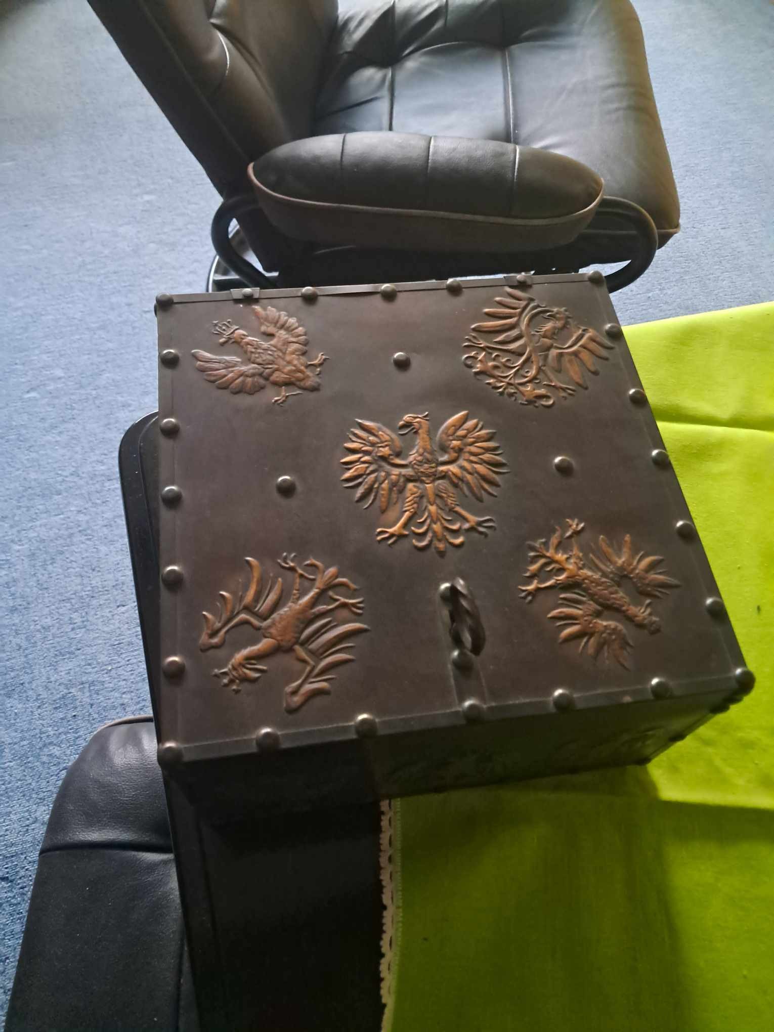 kolekcjonerska szkatułka 28 cm × 28 cm. Wysokość ok. 18 cm.