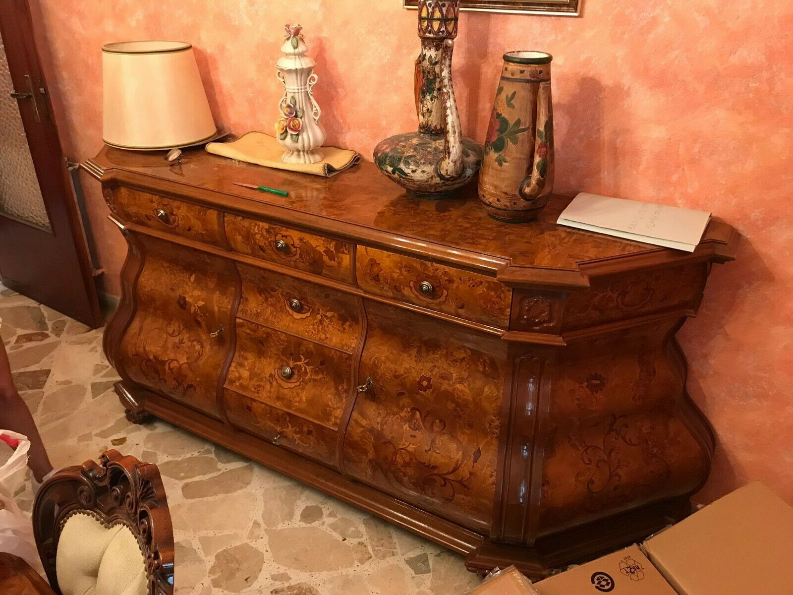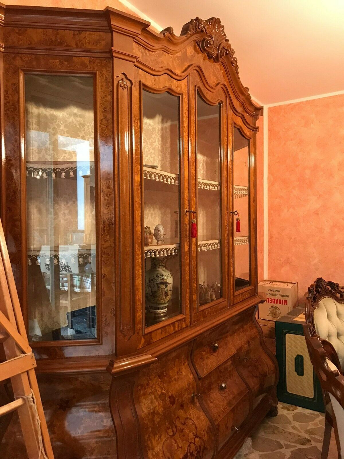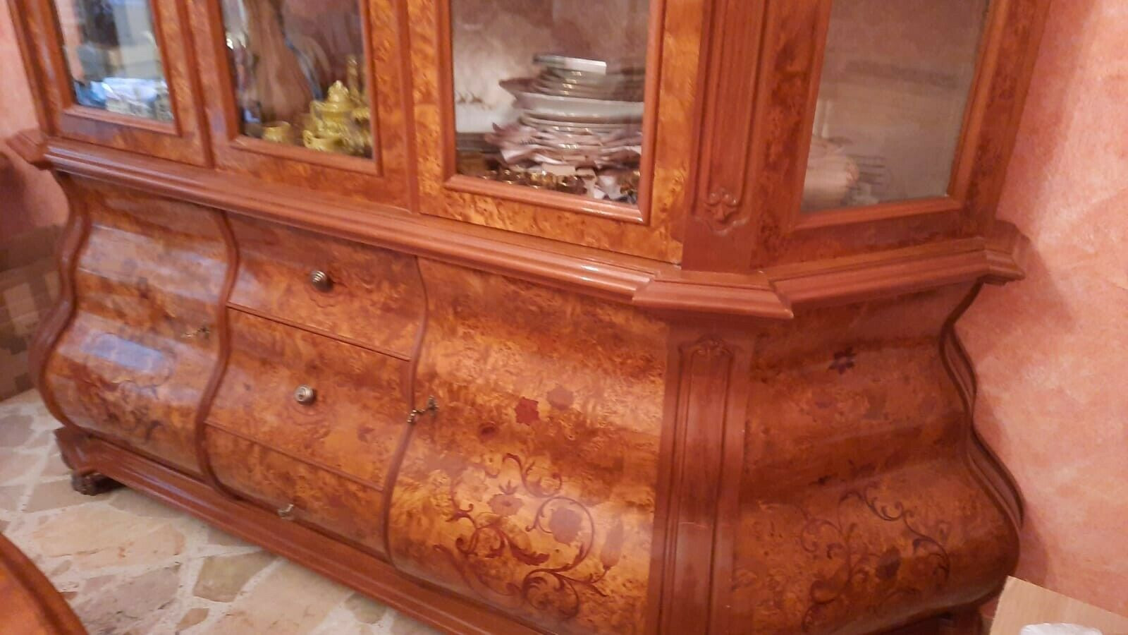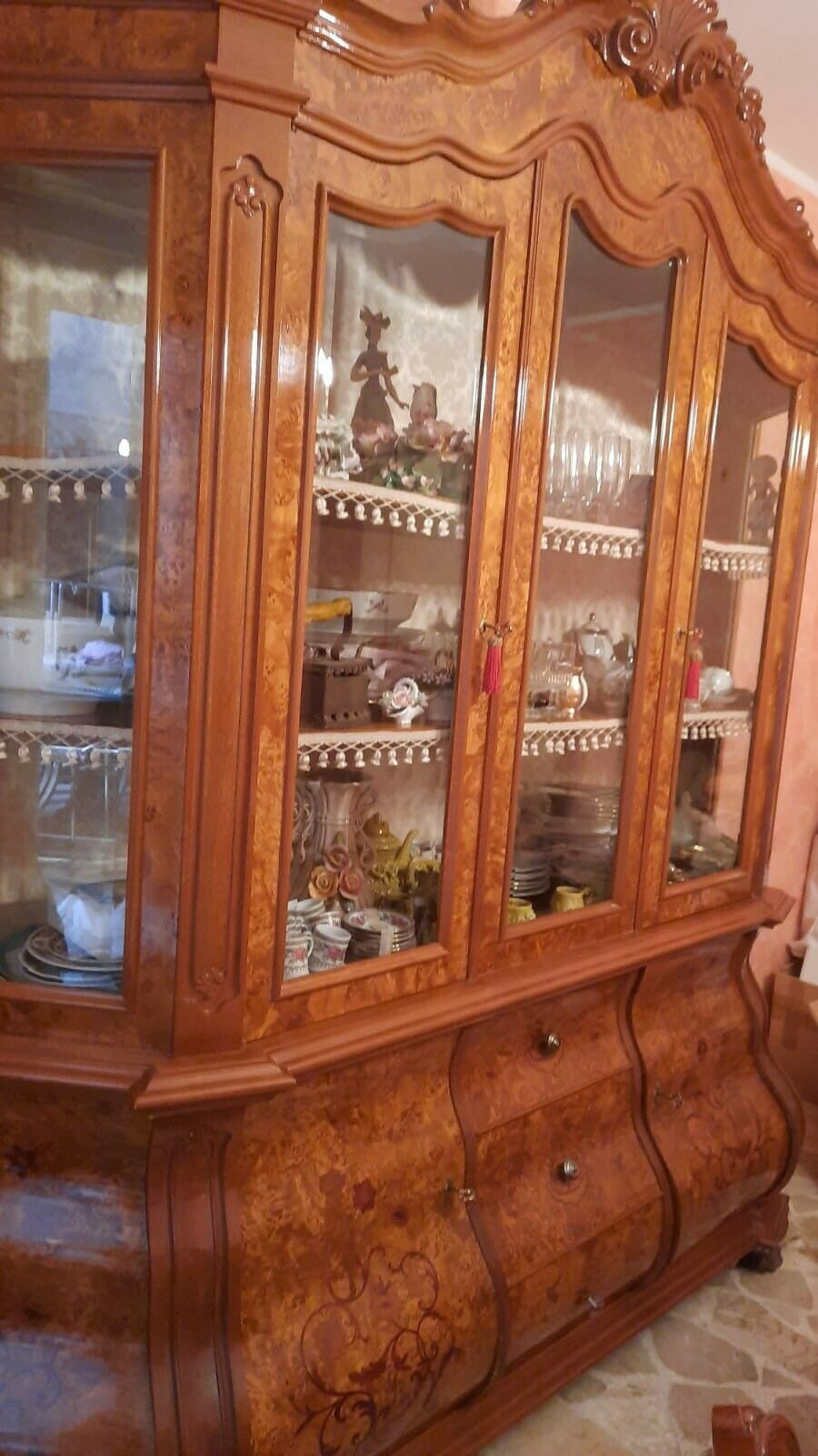 W skład kompletu wchodzi: kredens, pomocnik, stół, 4 x krzesło.
