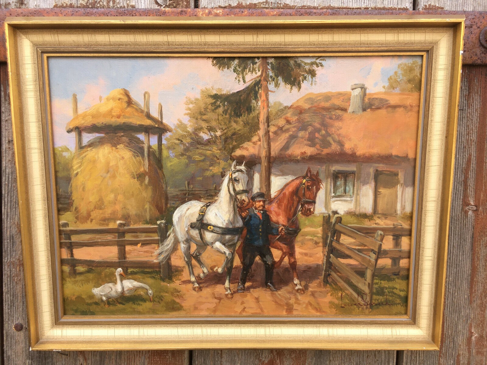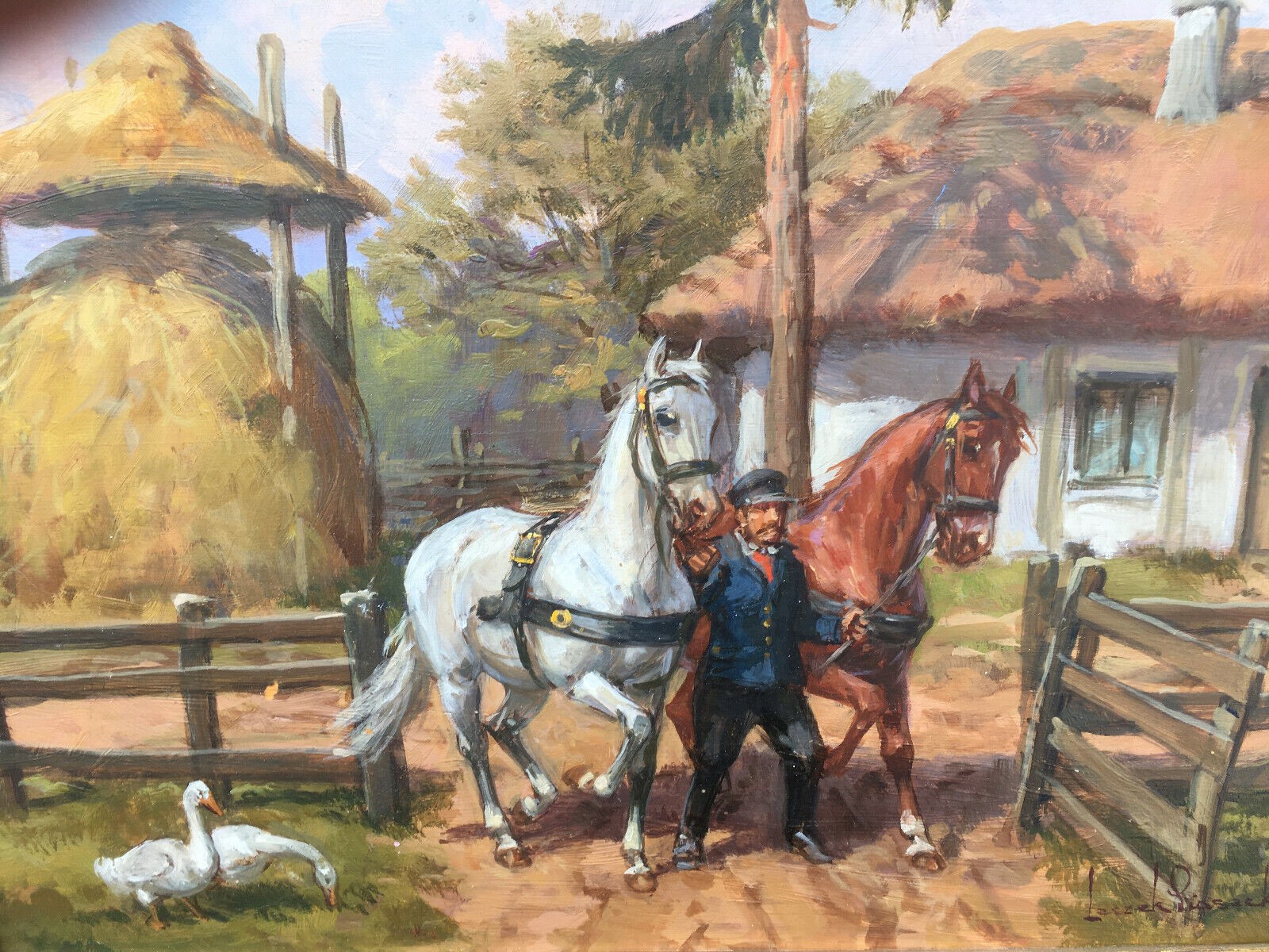 Ks108 Obraz, Oryginał, Leszek Piasecki (1928 -1990), Rolnik z końmi