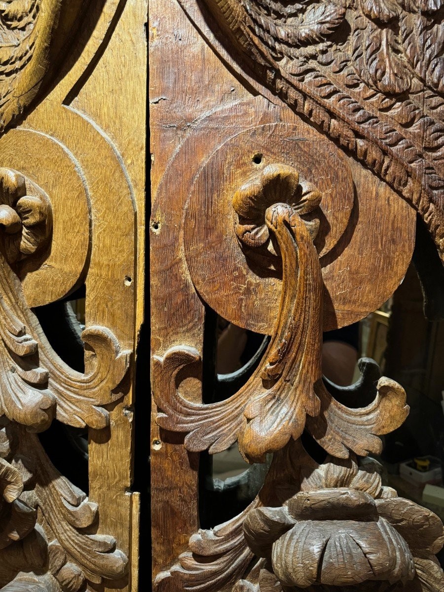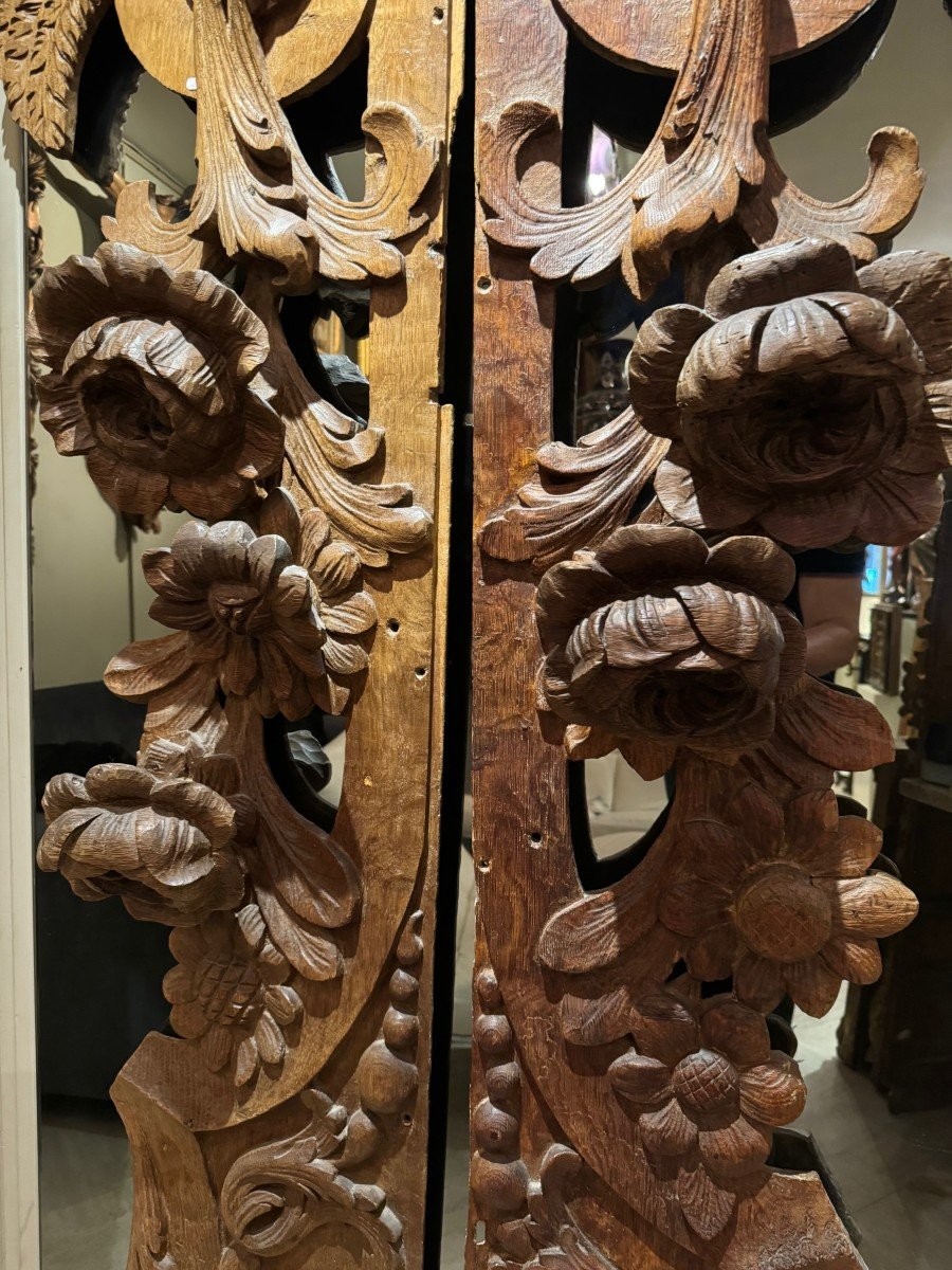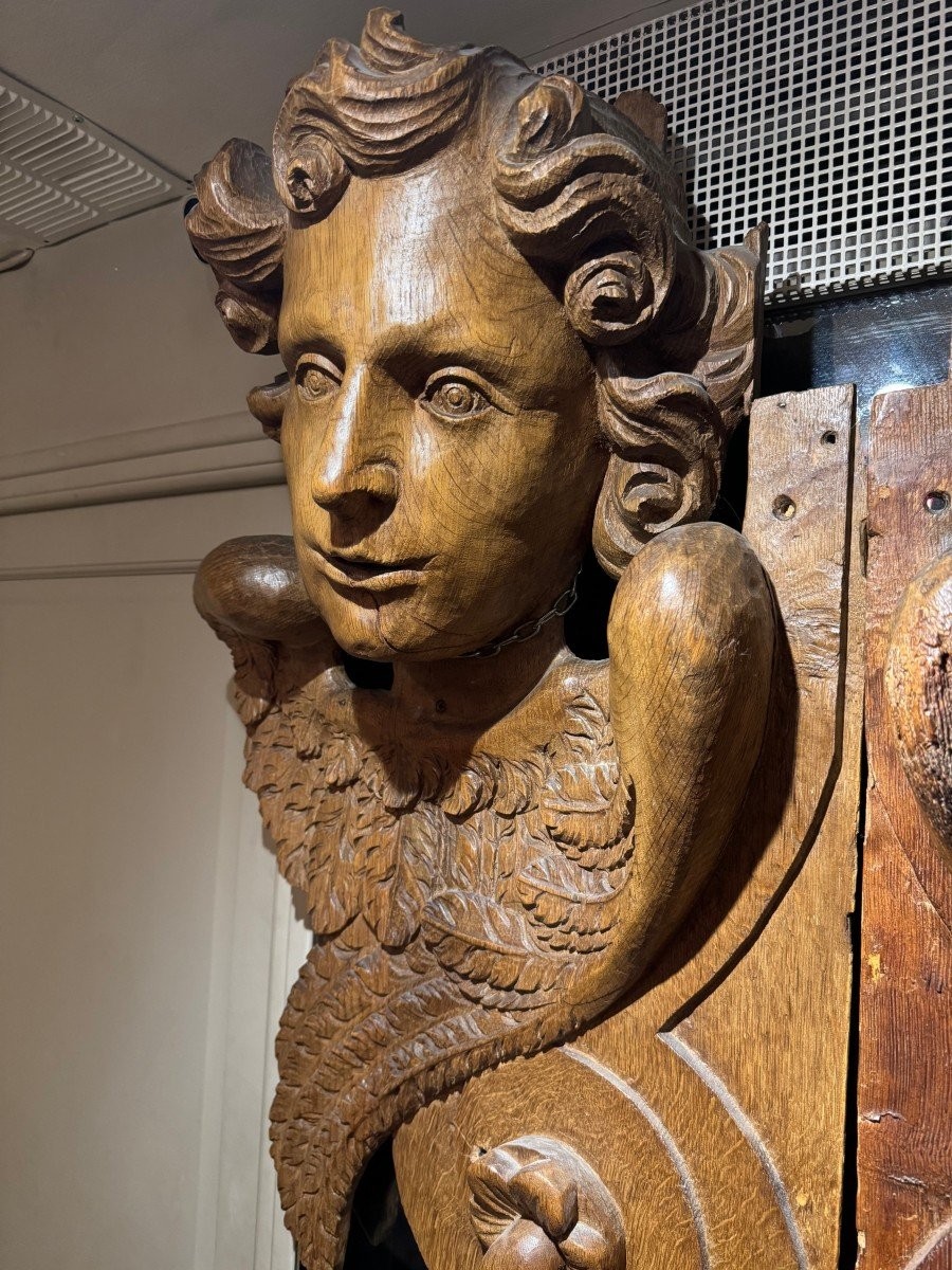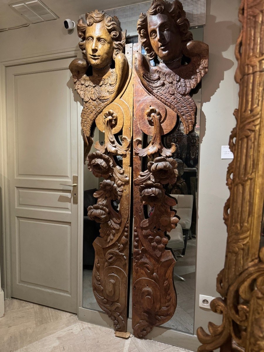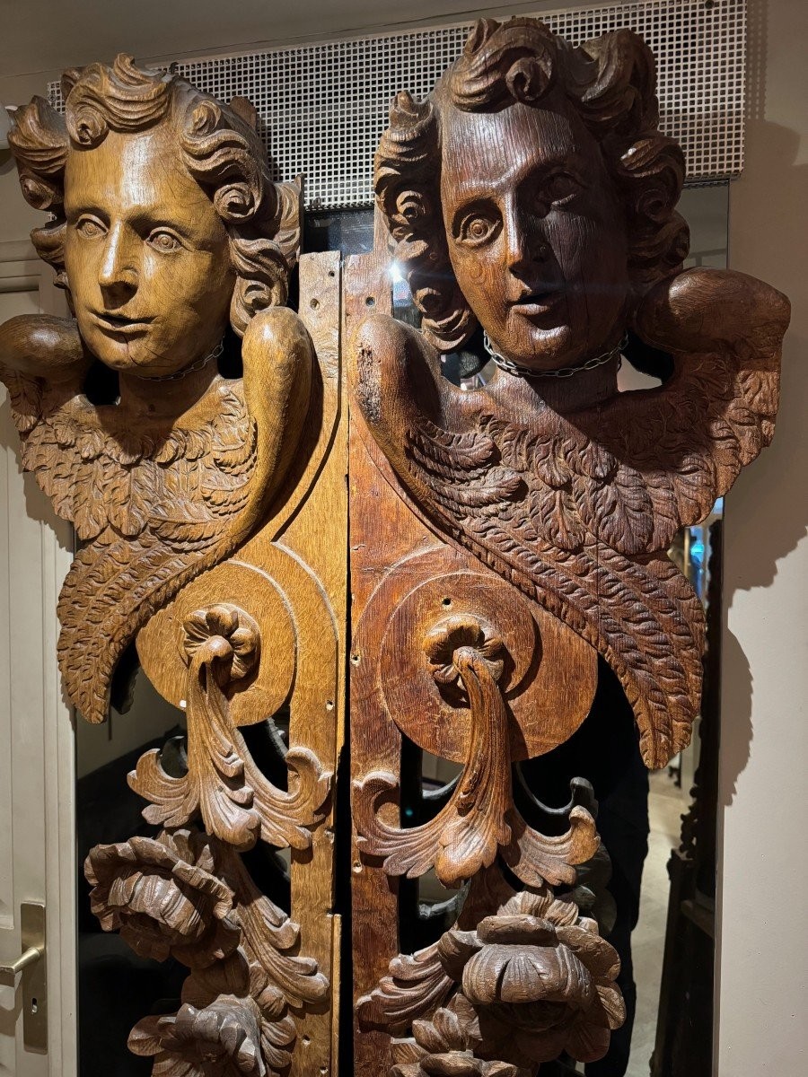 Ks148 Dwa duże elementy drewniane- Rzeźbione, skrzydlate anioły z XVIIw.