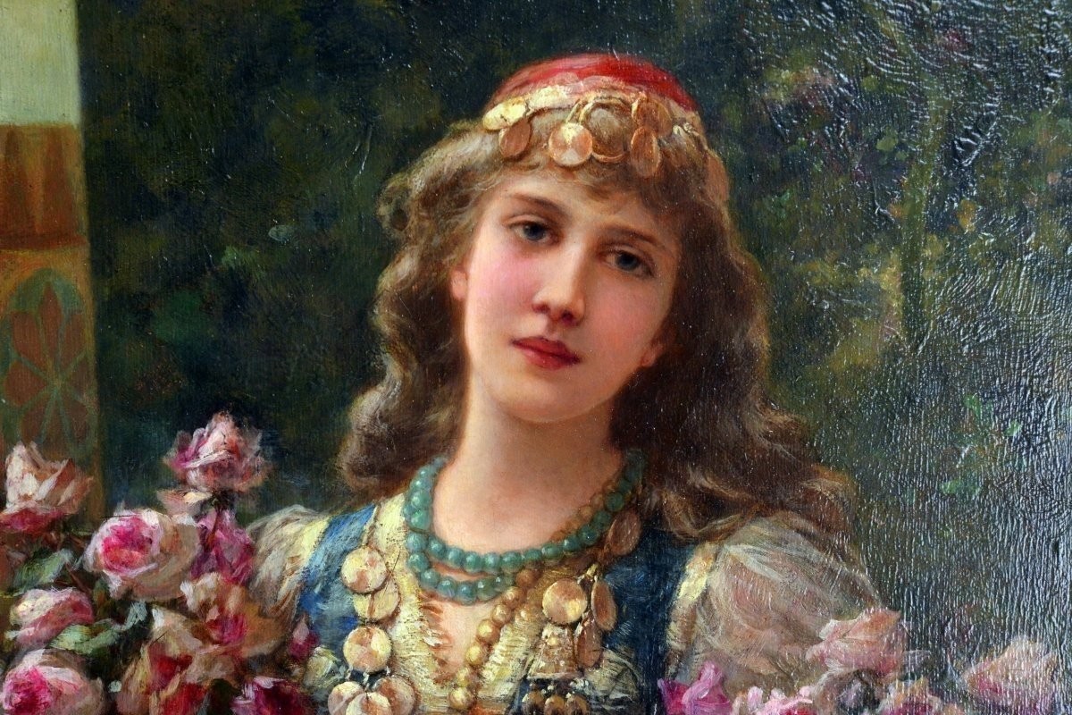 Ks220 Kobieta z kwiatami, Émile Eisman Semenowsky, Olej na drewnie, XIX w.