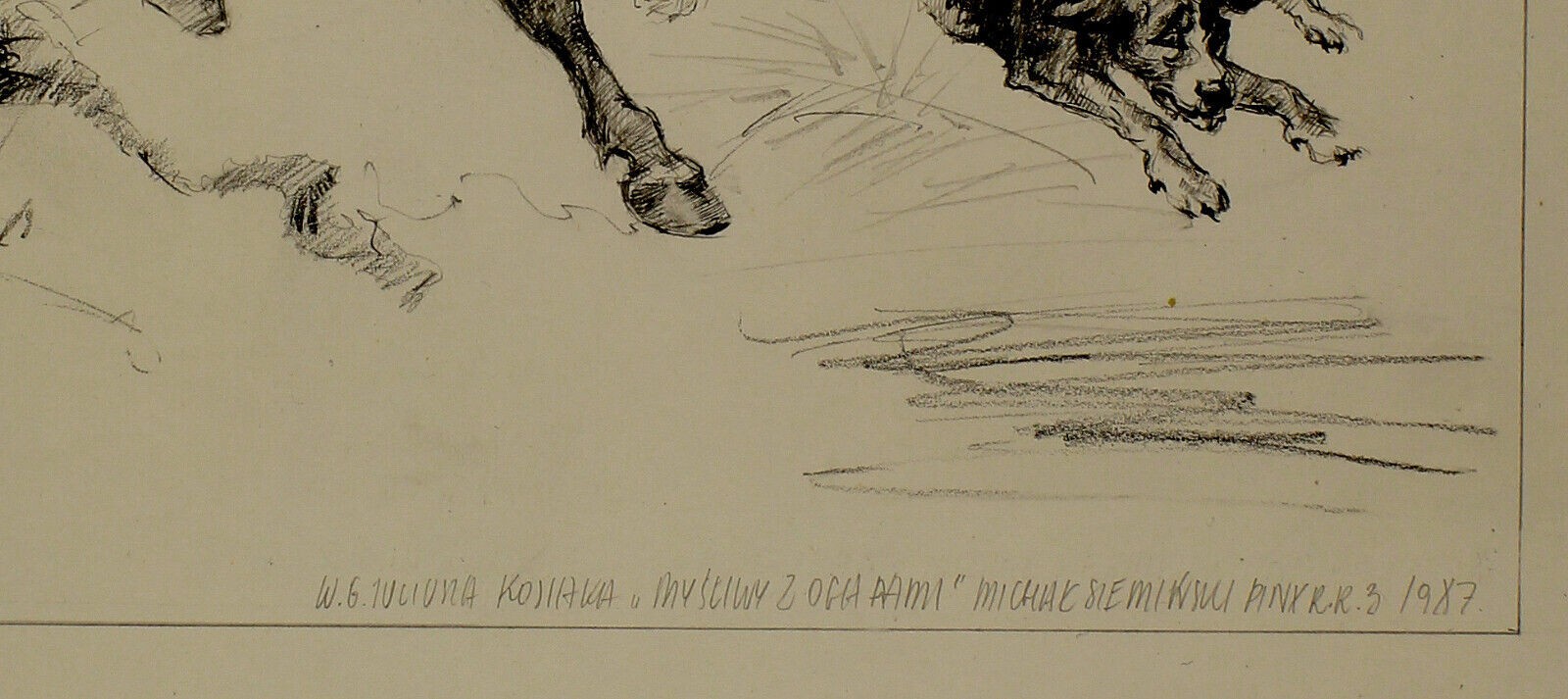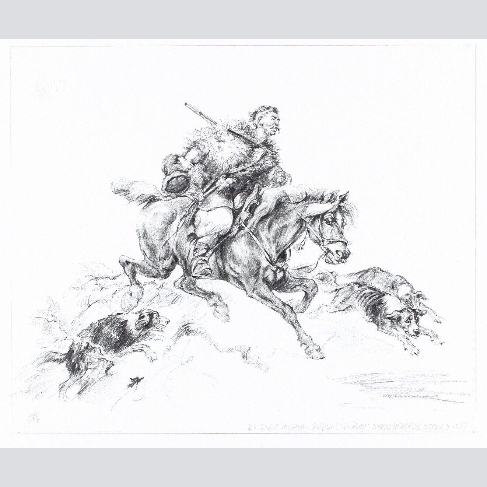 Ks279 Szkic, Kopia Mieczyslaw Sieminski (1891-1965), wg. Juliusza Kossaka, Kozak na koniu z psami myśliwskimi, 1917r.