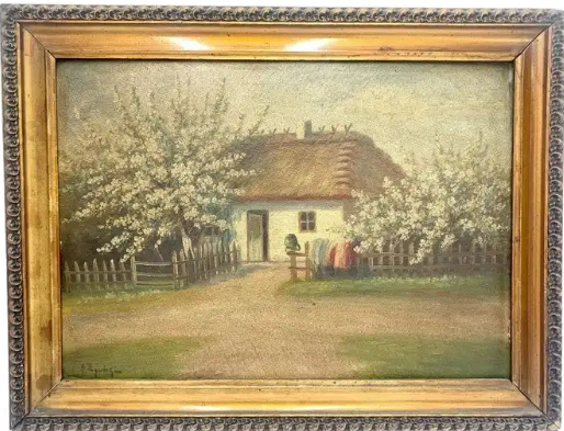 Ks343 Obraz, Oryginał, Andrzej Żywicki (1928-1970), Dom wiejski