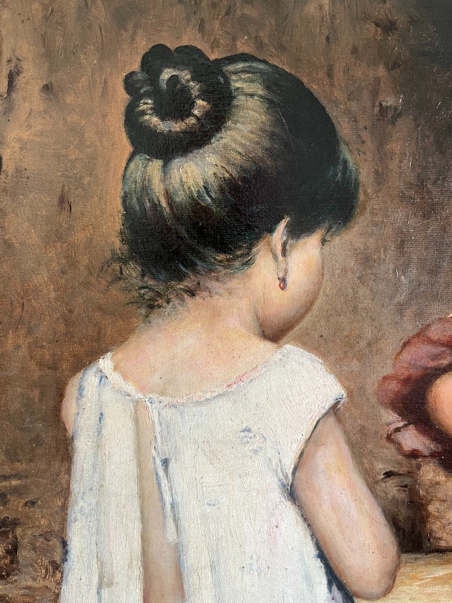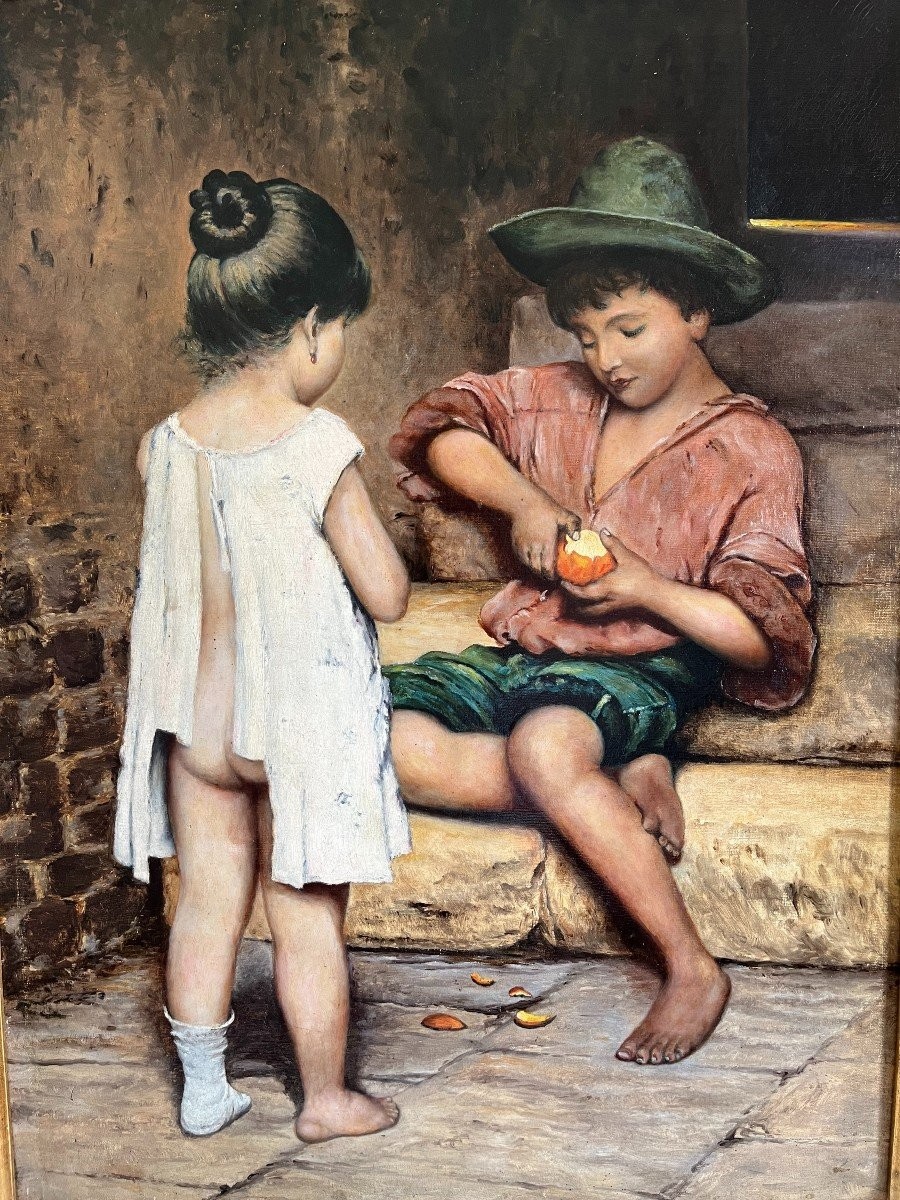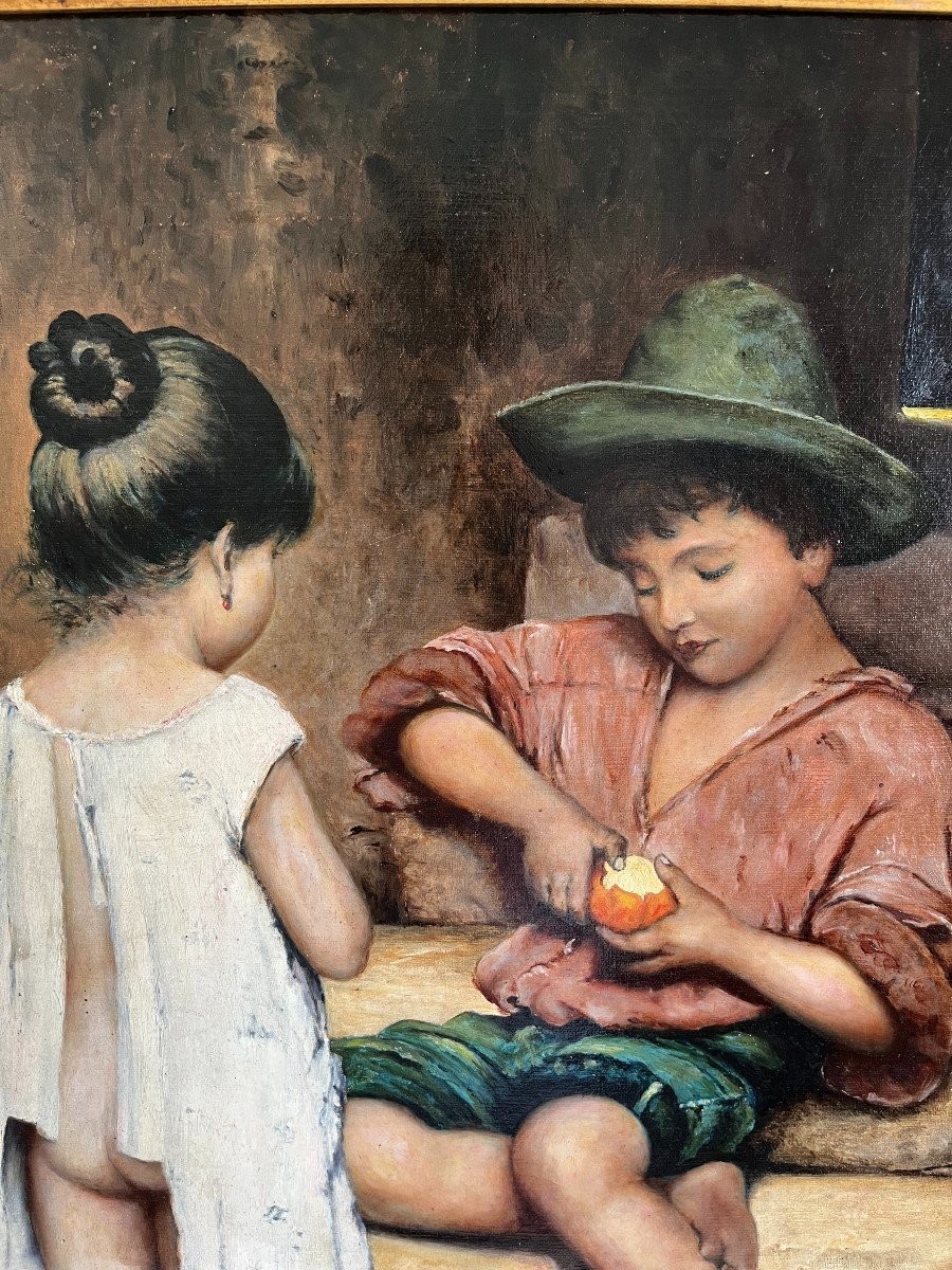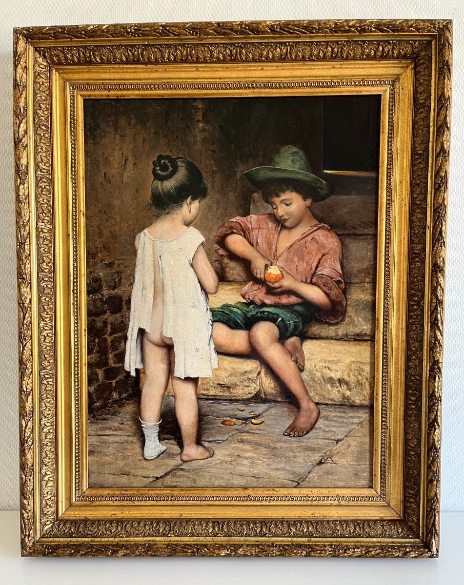 Ks415 Obraz, Oryginał, Dzieci dzielące się pomarańczą, XIXw.