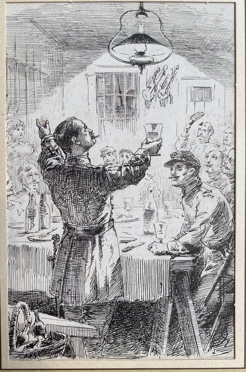 Ks454 Grafika, Oryginał, Paweł Merwart (1855-1902), Kolacja u Oficera