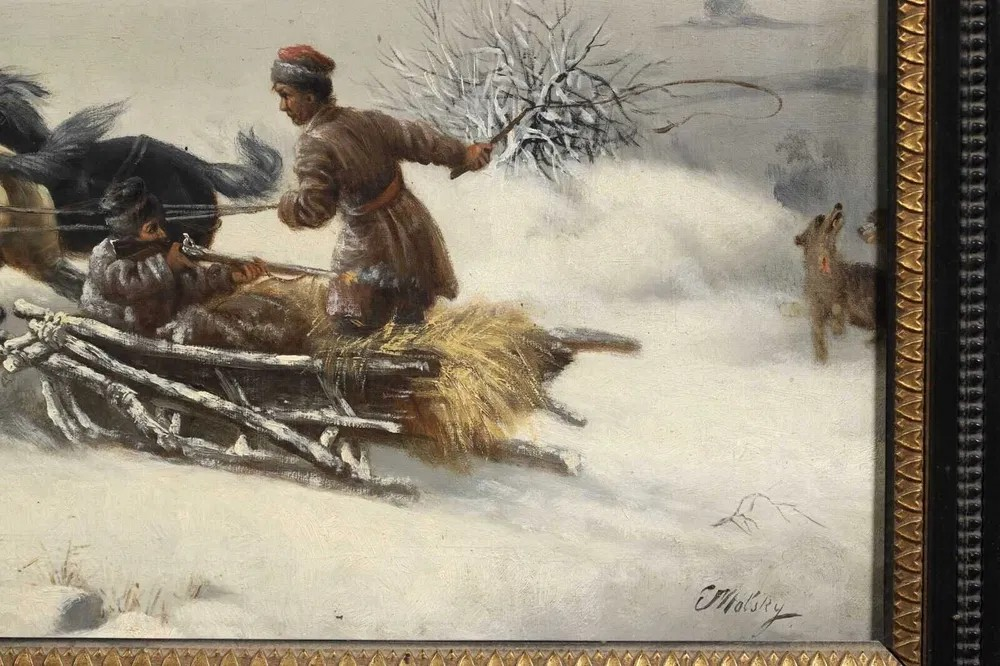 Ks479 Obraz, Oryginał, Stanisław Pomian Wolski (1859-1894), Scena z polowania, XIXw.