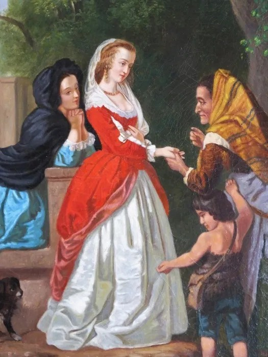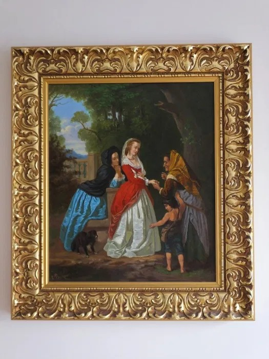 Ks482 Obraz, Oryginał, Cyganka wróżąca z ręki, XIXw.