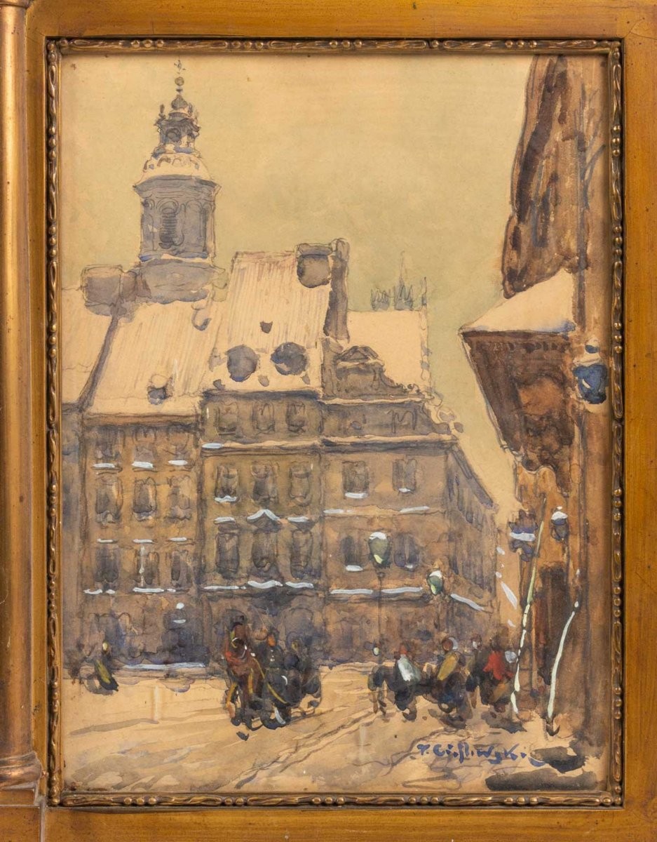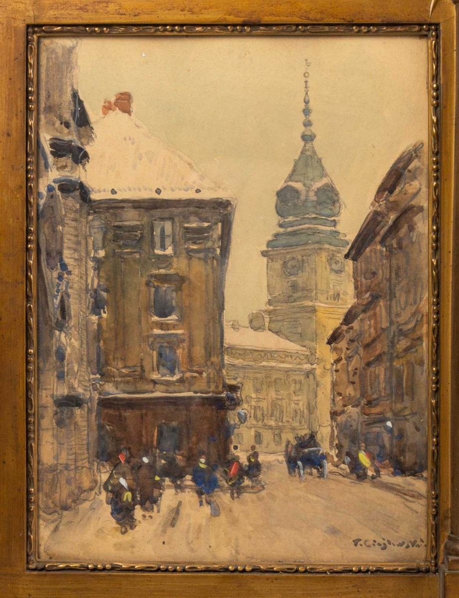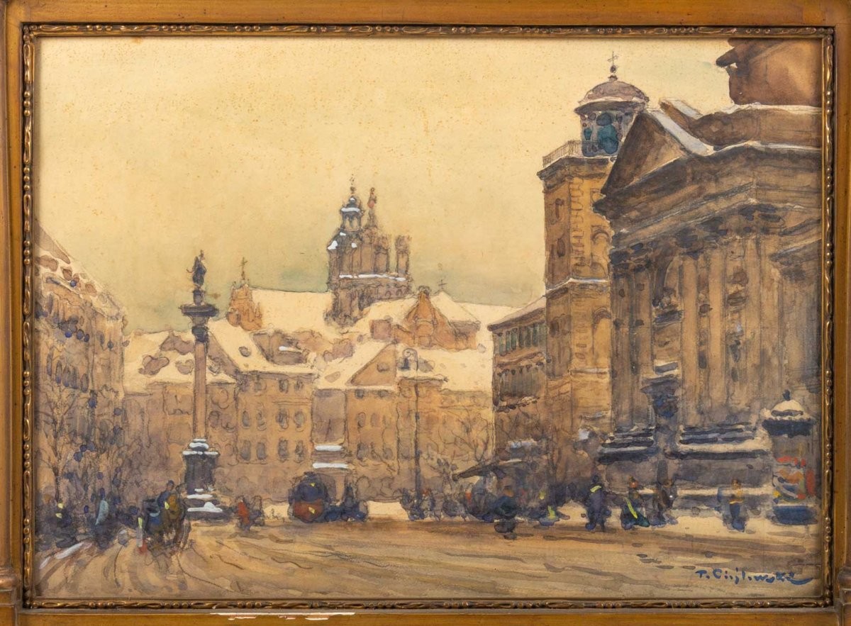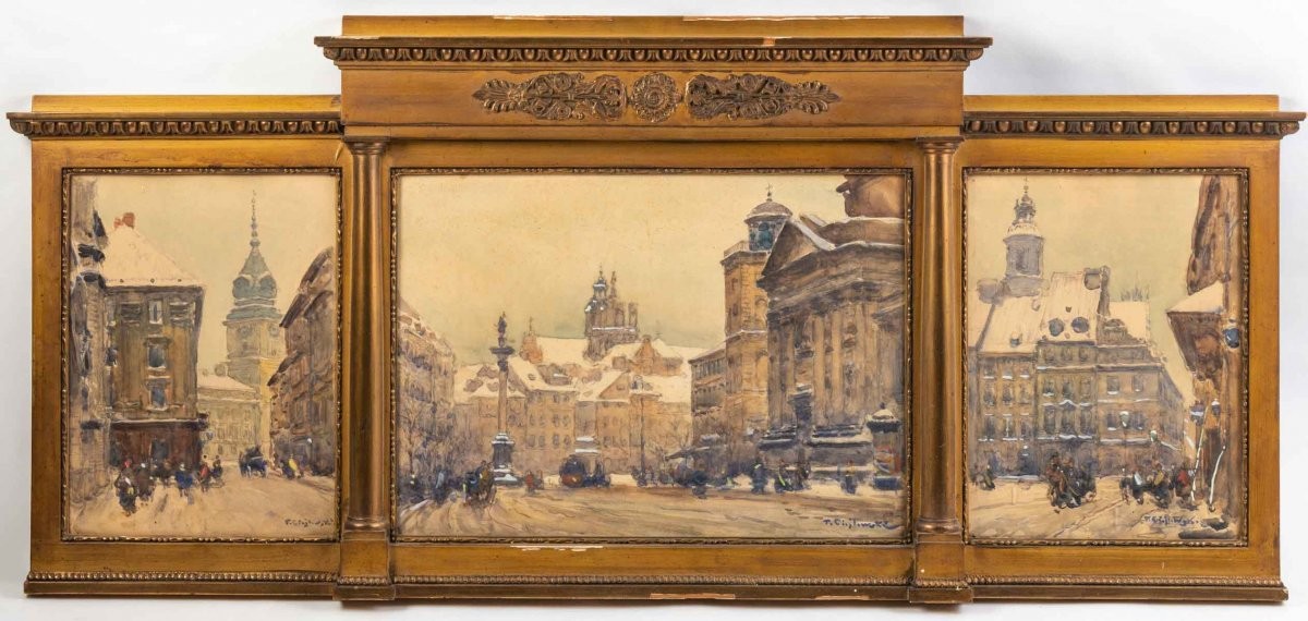 Ks484 Obraz, Oryginał, Tadeusz Cieślewski (1870- 1956) Tryptyk widoków Warszawy, XIX