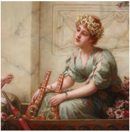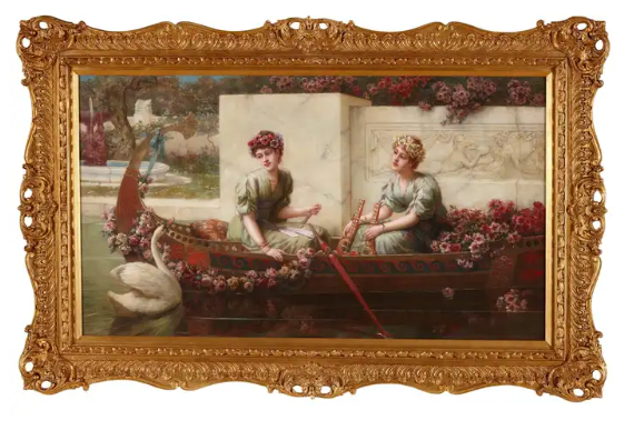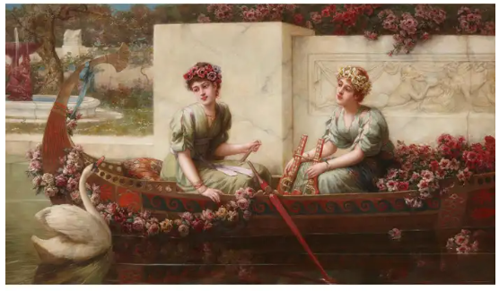 Ks564 Obraz, Oryginał, Émile Eisman-Semenowsky (1857, Polska- 1911, Paryż), Kwiatowe Dziewice, ok 1900r.