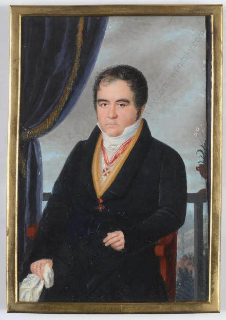 Ks565 Obraz, Miniatura, Oryginał Aleksander Ludwik Molinari, Portret Generalnego Konsula Gdańska, Antoniego Makarowicza, XIXw.