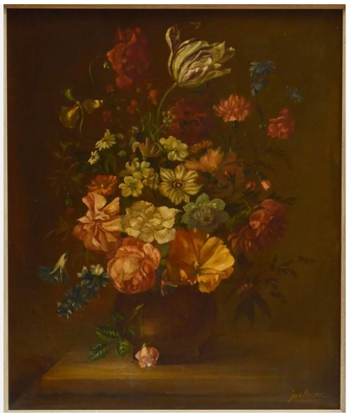 Ks572 Obraz, Oryginał, Jan Emil Tuche, Martwa Natura, Kwiaty w wazonie