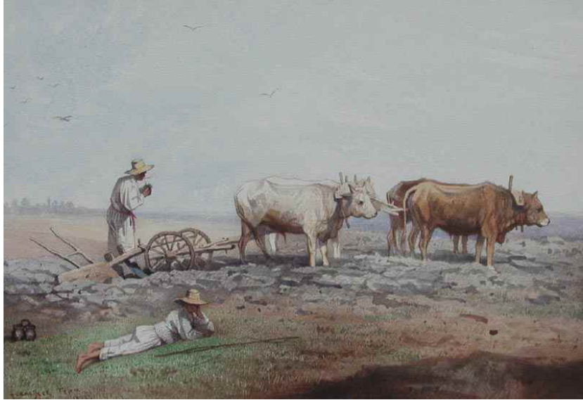 Ks606 Akwarela, Oryginał, Franciszek Tepa (1829 – 1889), Chłopi na roli