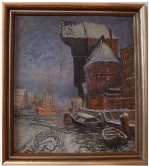 Ks664 Obraz, Oryginał, Theodor Urtnowski (1881-1963), Gdańsk z Żurawiem