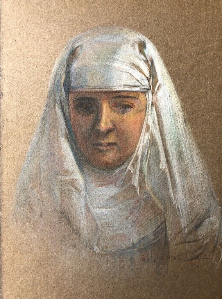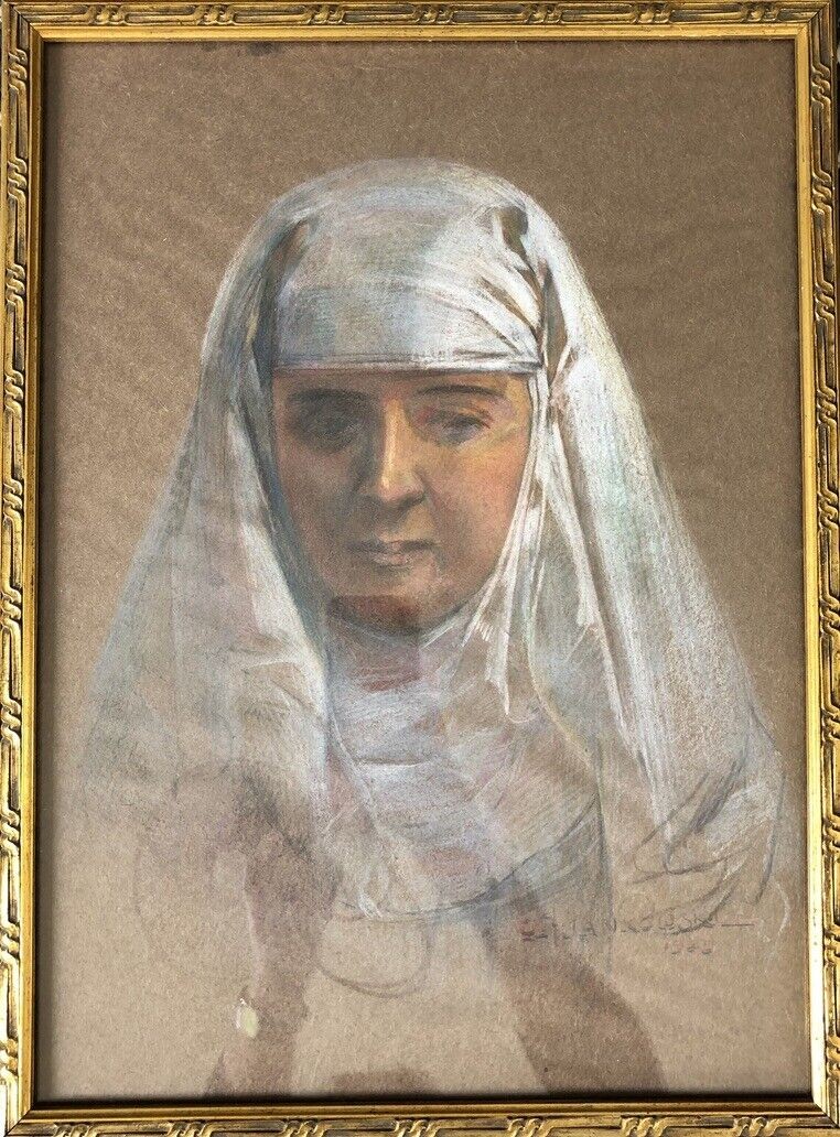 Ks690 Obraz, Oryginał, Czesław Borys Jankowski (1862-1941), Portret Zakonnicy