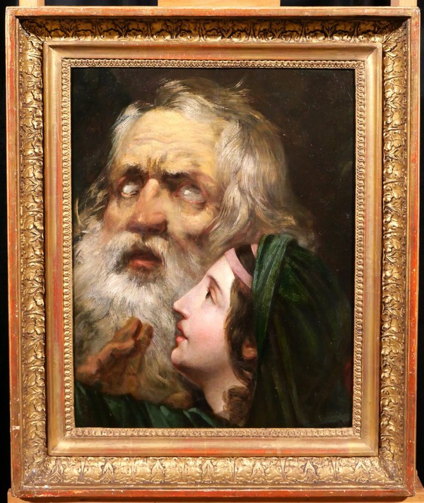 Ks744 Edyp i Antygona, Neoklasycystyczny olej na drewnie, XIX w.