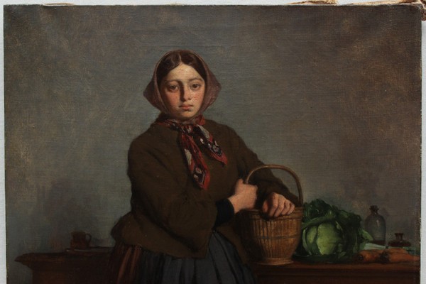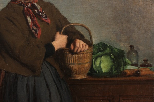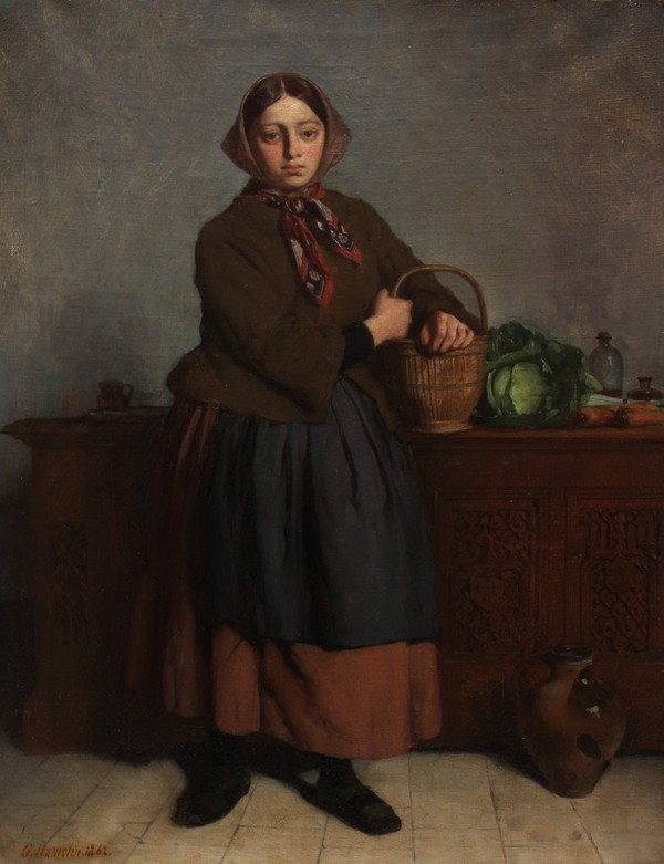 Ks745 Obraz, Oryginał, Młoda chłopka z koszem na warzywa, XIXw.