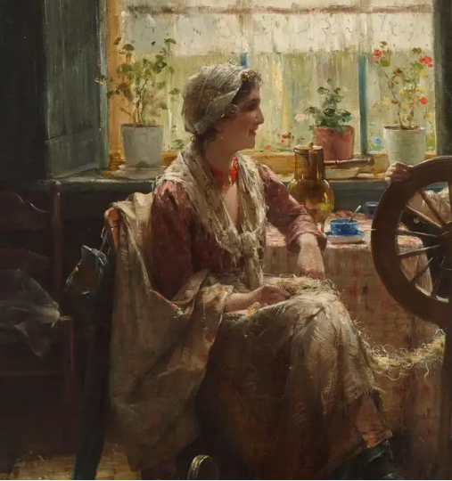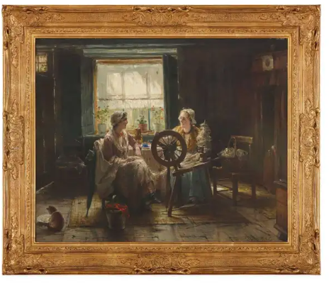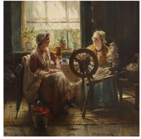 Ks830 Obraz, Przędzenie Wełny, XIXw.