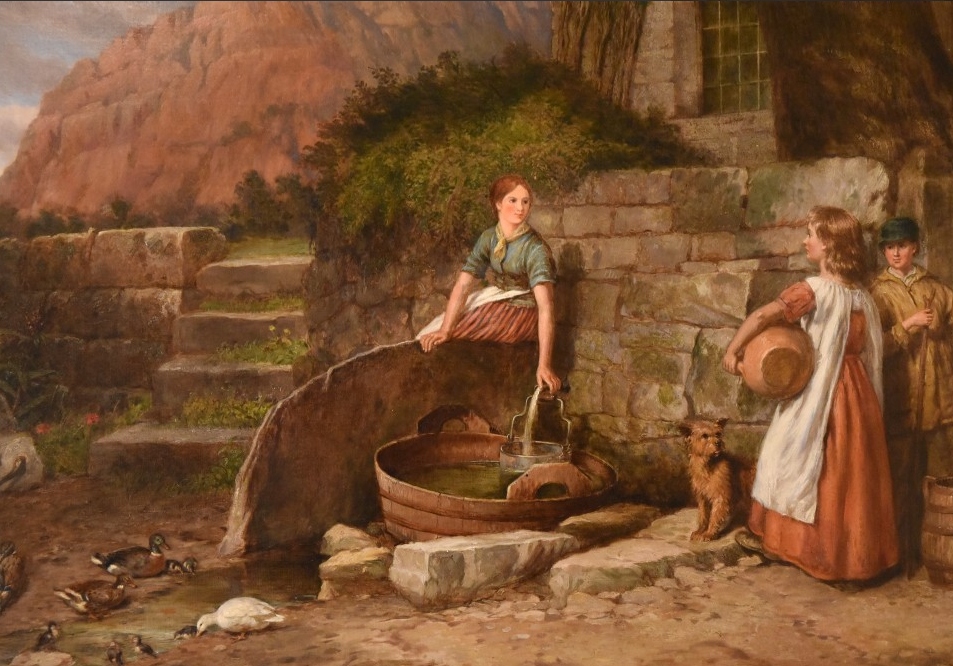 Ks864 Duży Obraz, Scena Rodzajowa, Przy Studni, XIXw.