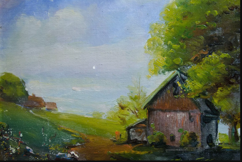 Ks966 Leon Abramowicz (1889-1978),Pejzaż z chatą