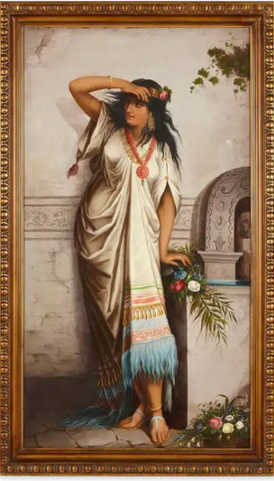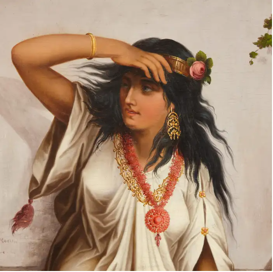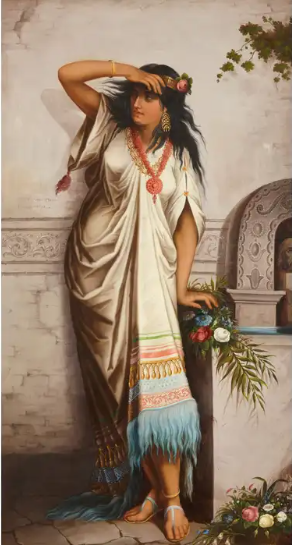 Ks984 Duży Obraz, Oryginał, Stefan Bakałowicz (1857-1947), Obraz kobiety orientalnej,