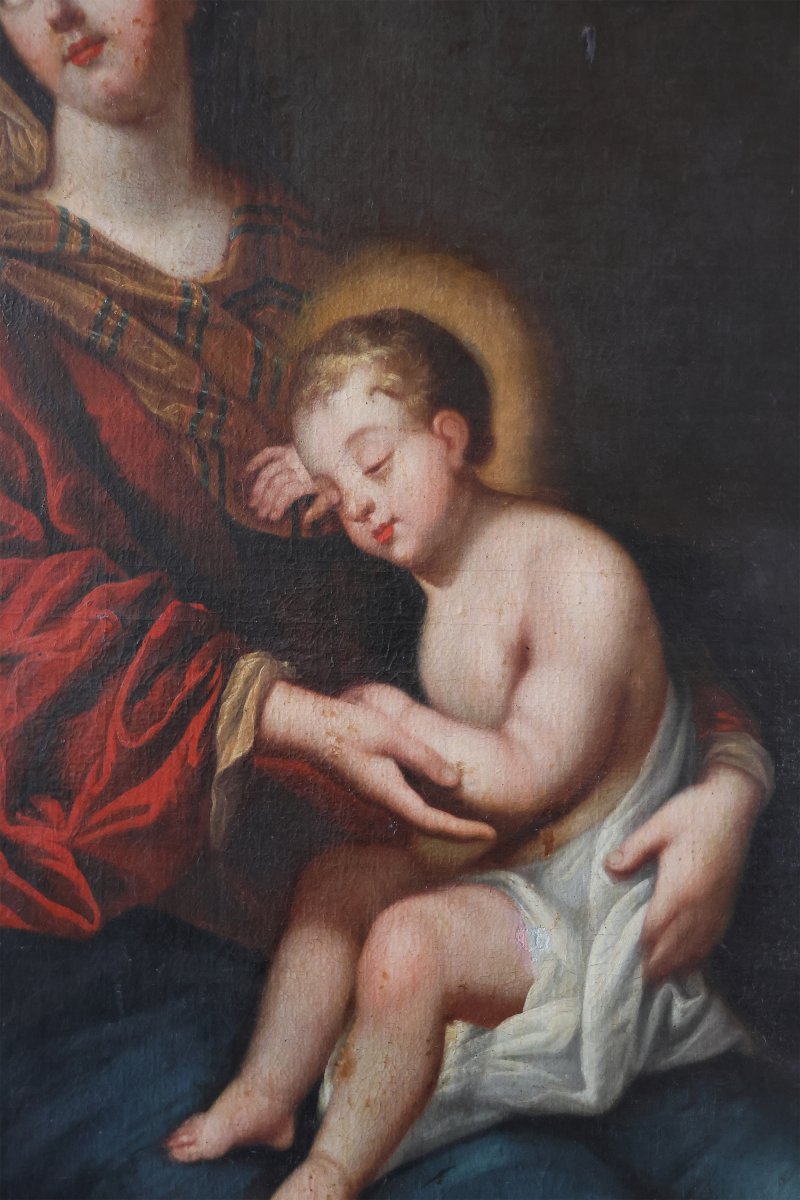 Francuska szkoła; Madonna z Dzieciątkiem, XVII wiek, olej na płótnie.