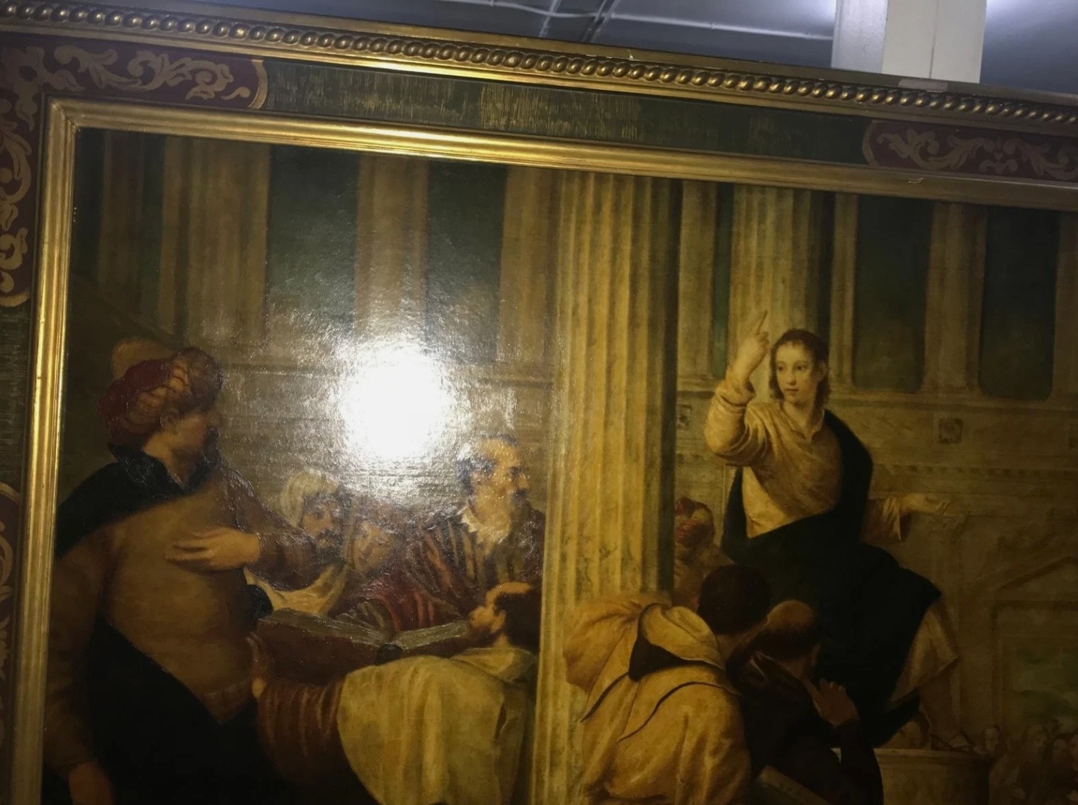 Olej na płótnie antyk Chrystus nauczający ( kopia wielkiego dzieła )
