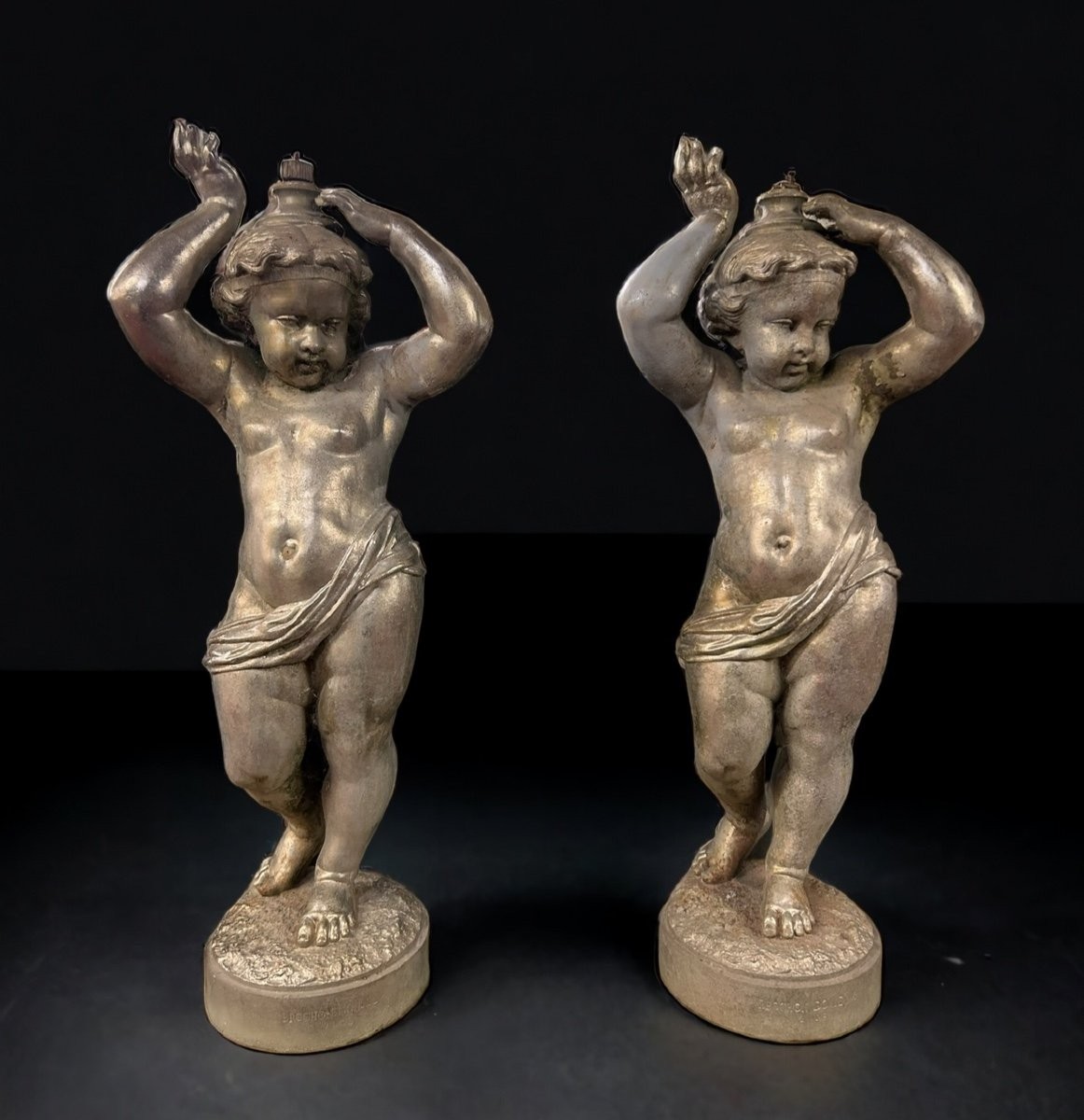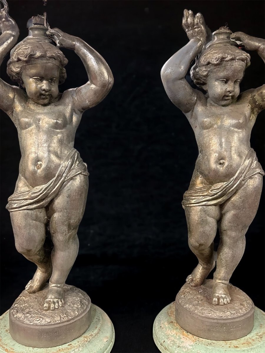 S1366 2 x Rzeźba/Lichtarz w kształcie cheruba, XIX w.