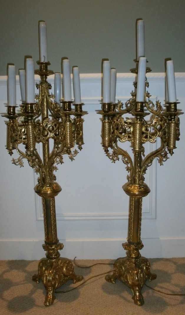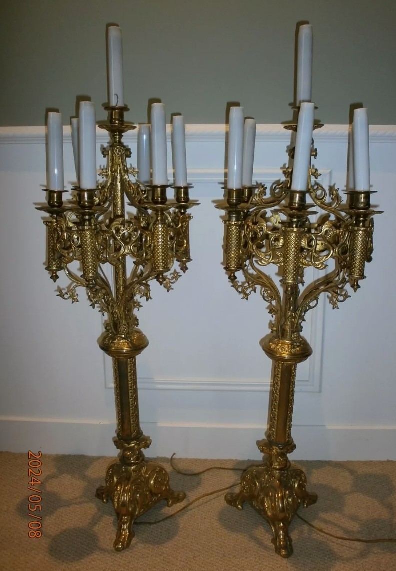 S1245 2 x Neogotycki kandelabr, XIX/XX w.