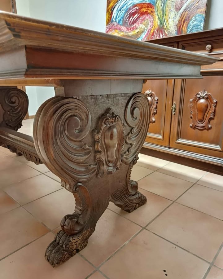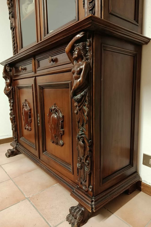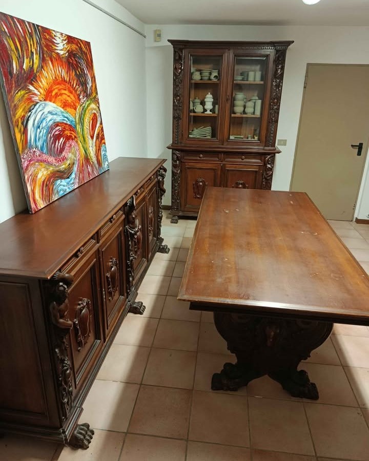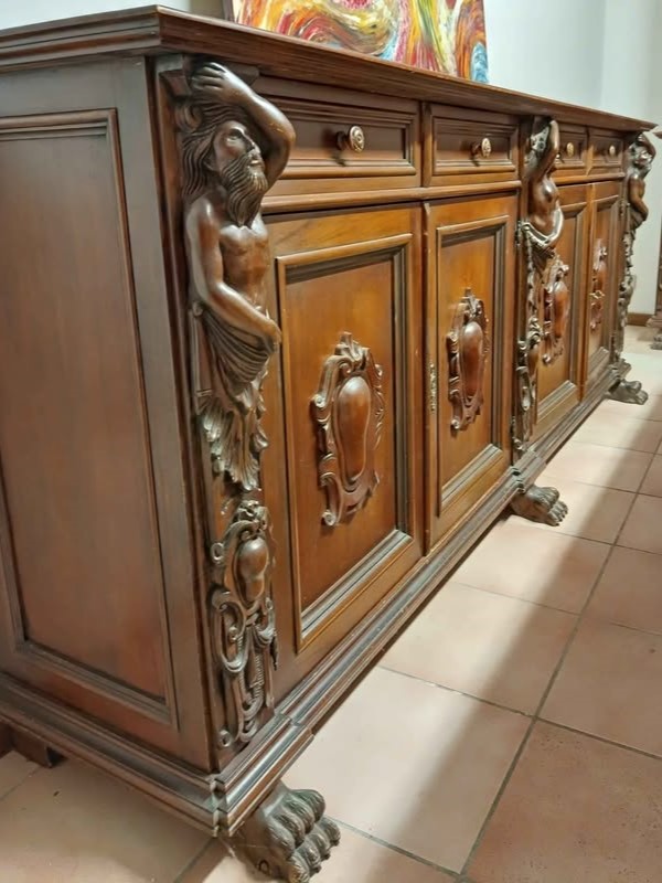 W skład kompletu wchodzi: kredens z kariatydami i atlantami, bufet z kariatydami i atlantami, stół na lwich łapach.